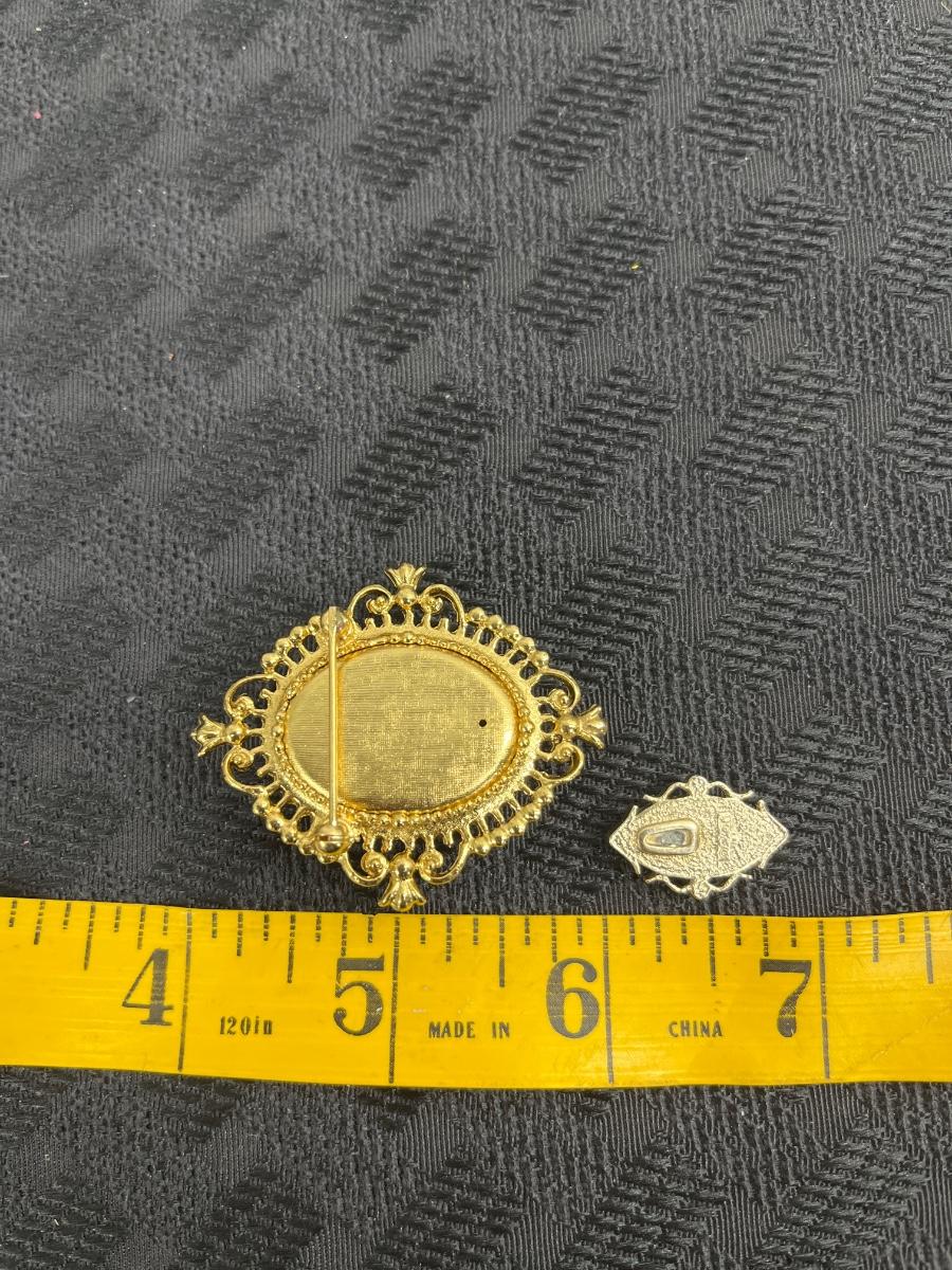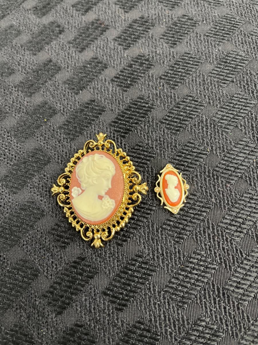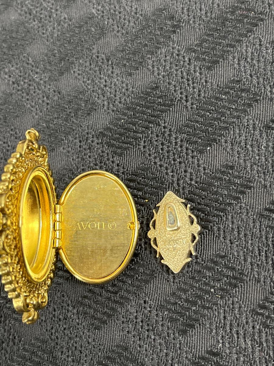 Vintage 1970s Avon Cameo Gold Tone Perfume Locket Brooch (signed)