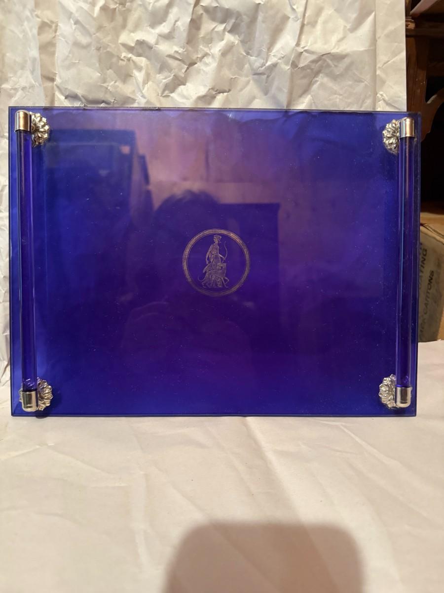 Vintage Avon Moonwind Vanity Tray Cobalt Blue Glass Goddess