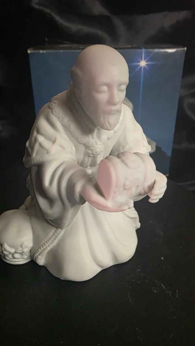 Vintage AVON Nativity Figure – The Magi Melchior – Kneeling Porcelain Wise Man, 1980s