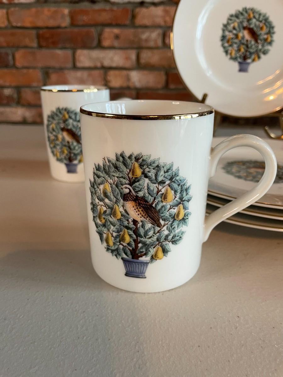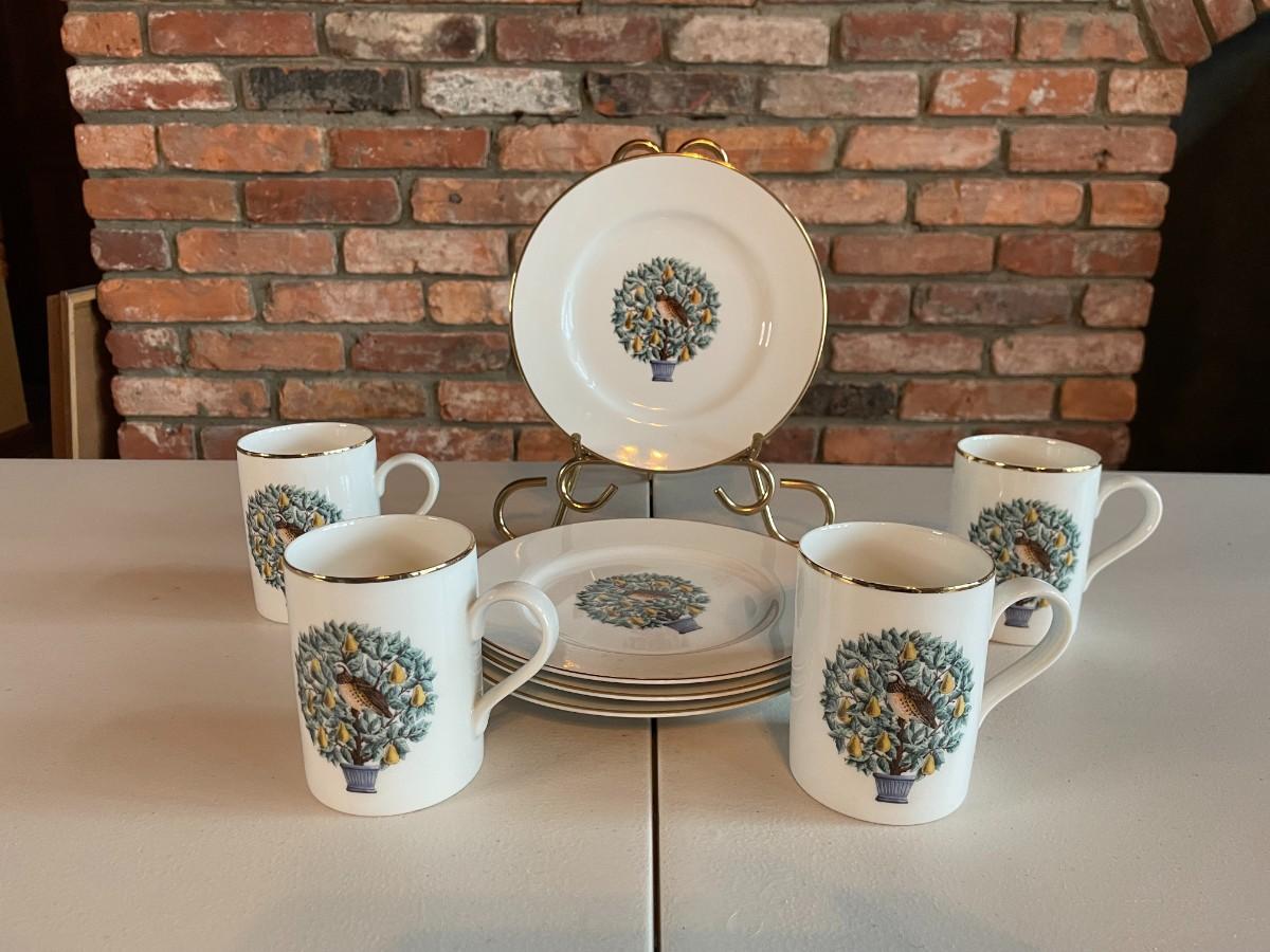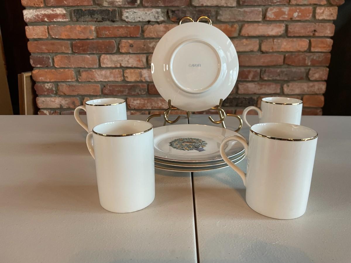 Vintage Avon "Partridge in a Pear Tree" - 4 Coffee Mugs and Plate Set