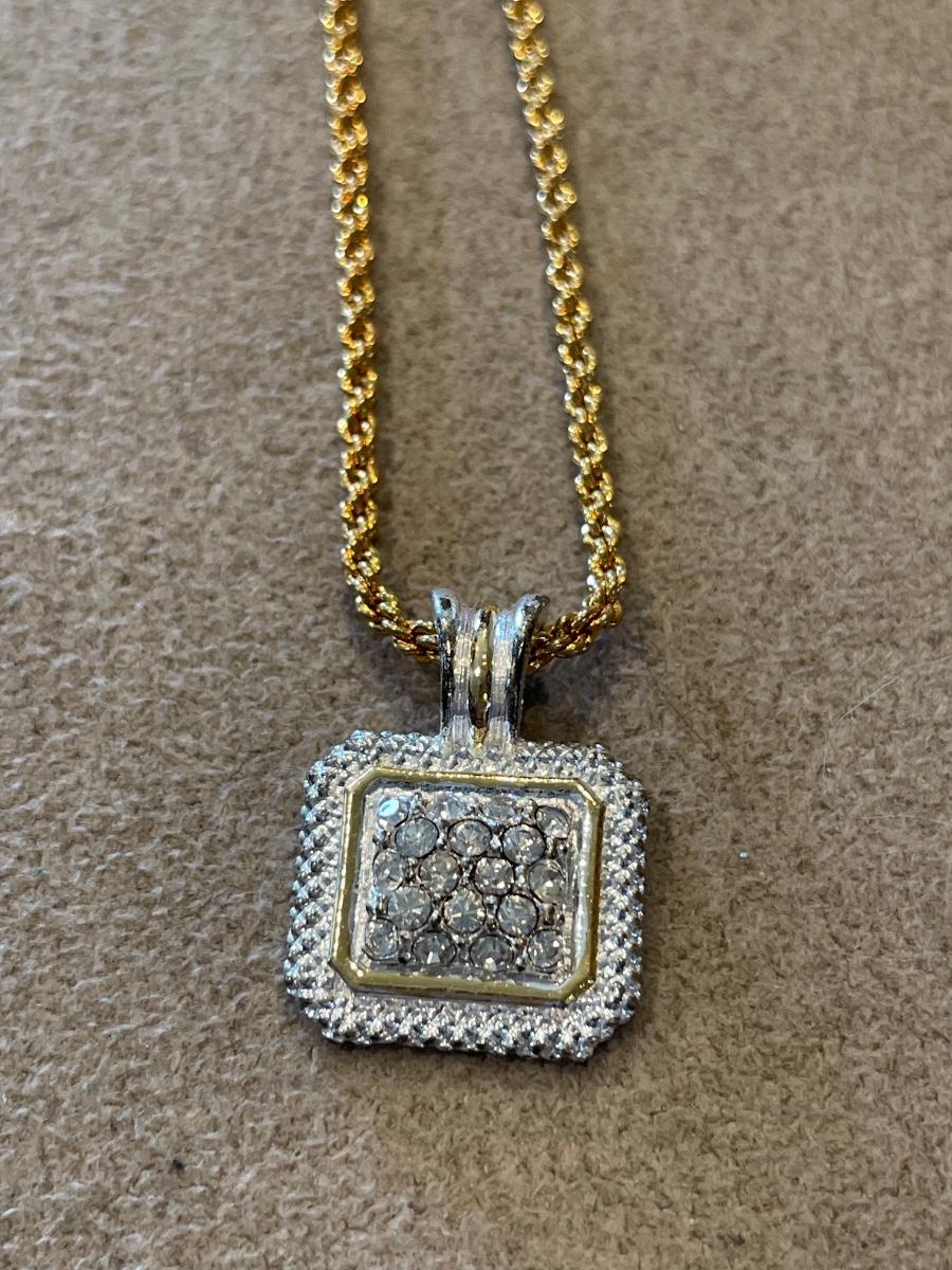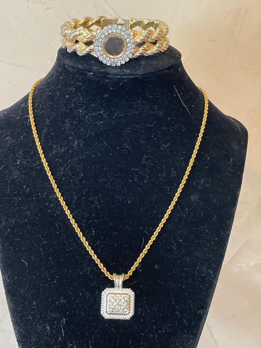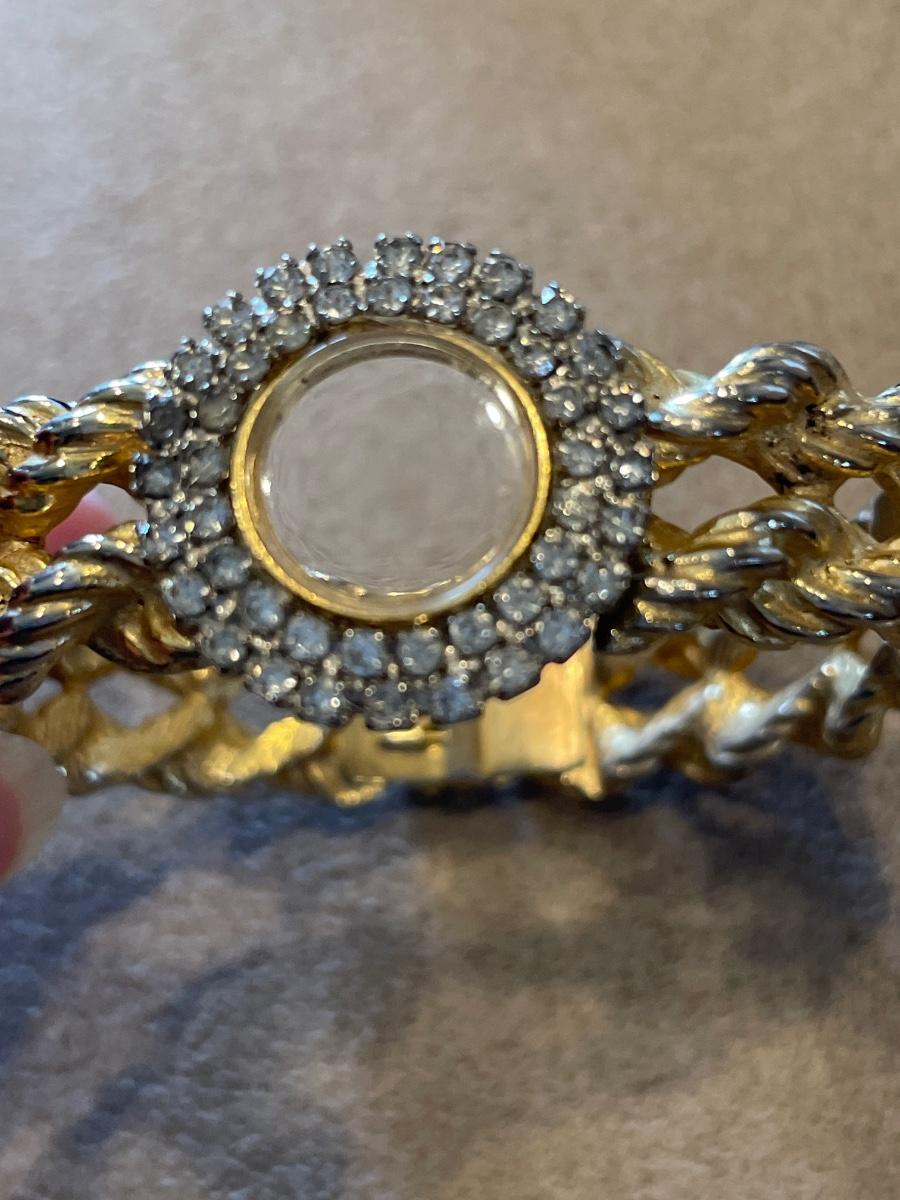 Both have sparkling rhinestones set in gold tone with a twisted design.