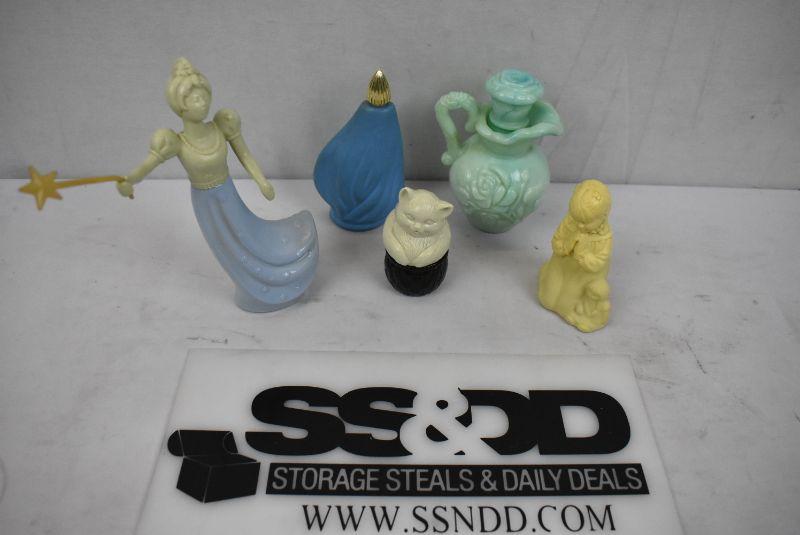 Vintage Avon Perfume Figurines, Good Fairy, Cat, Prayer, Bath Oil Decanter