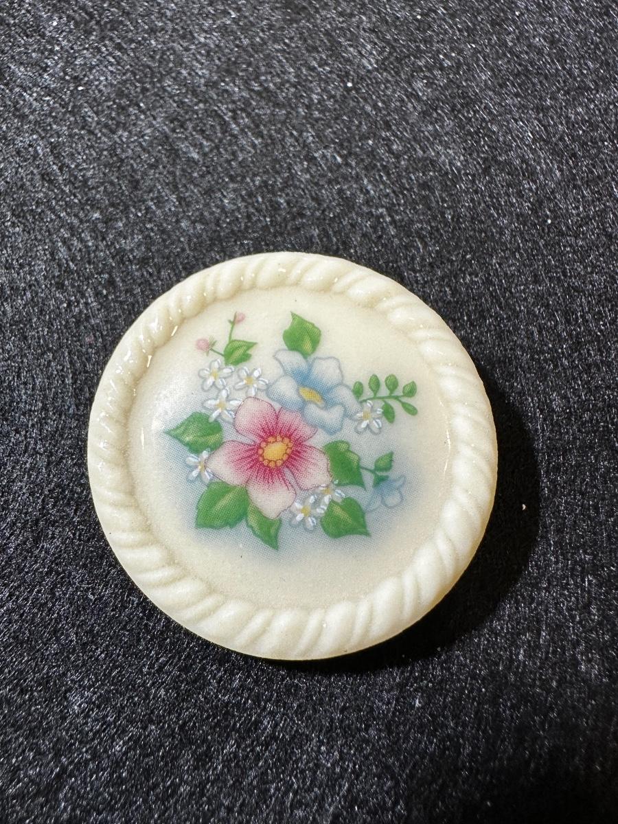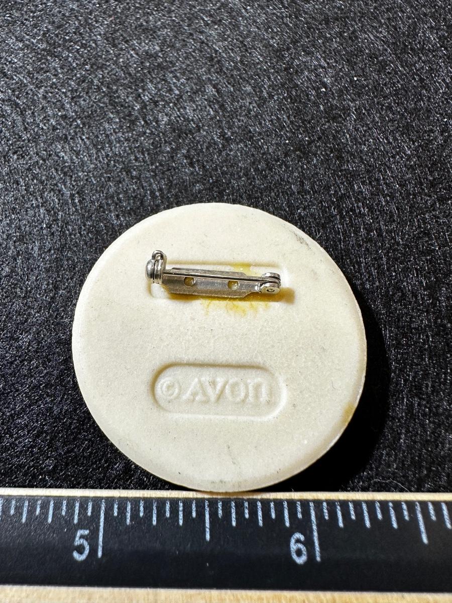Vintage Avon Porcelain Brooch Pin White Pink Blue Floral Round Medallion