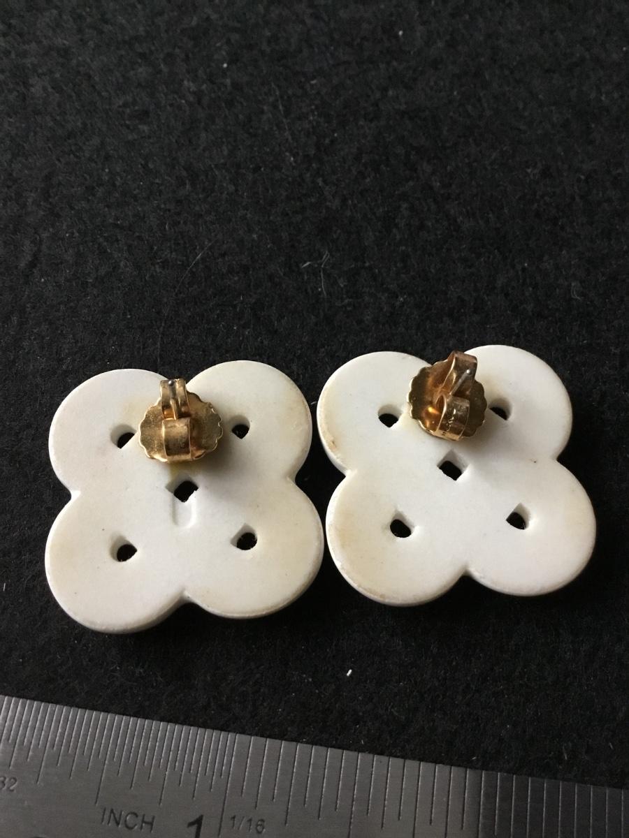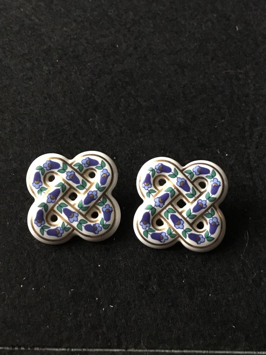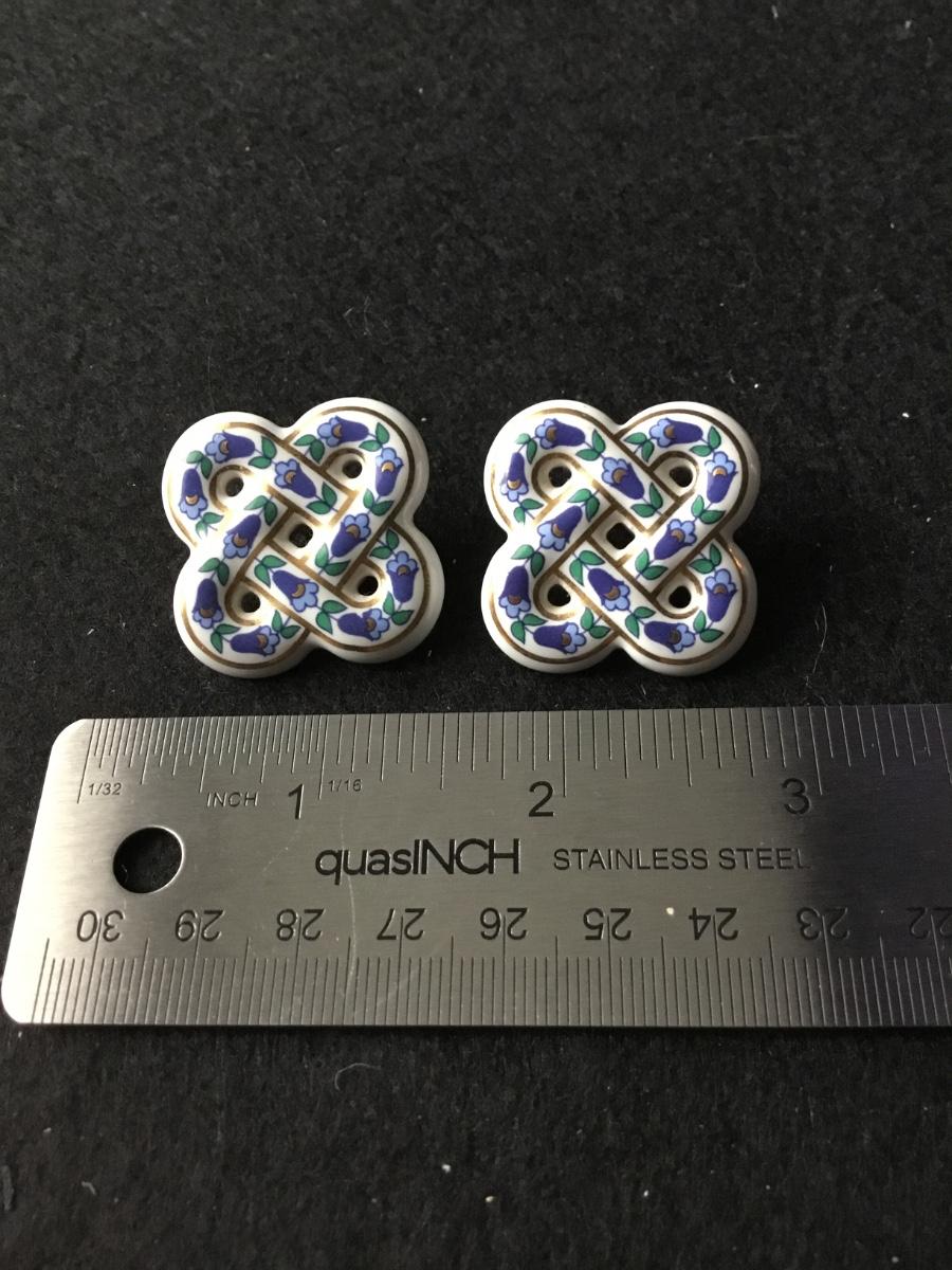 Vintage Avon porcelain Celtic knot blue and green floral design earrings