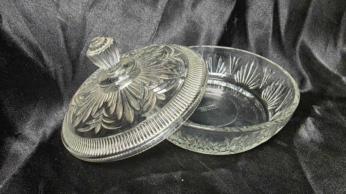 Collectors appreciate these Avon glass pieces for their craftsmanship, nostalgic charm, and decorative flexibility. Whether styled on a vanity, displayed in a curio cabinet, or incorporated into an elegant tabletop vignette, this covered dish delivers both function and visual sophistication with unmistakable vintage appeal.