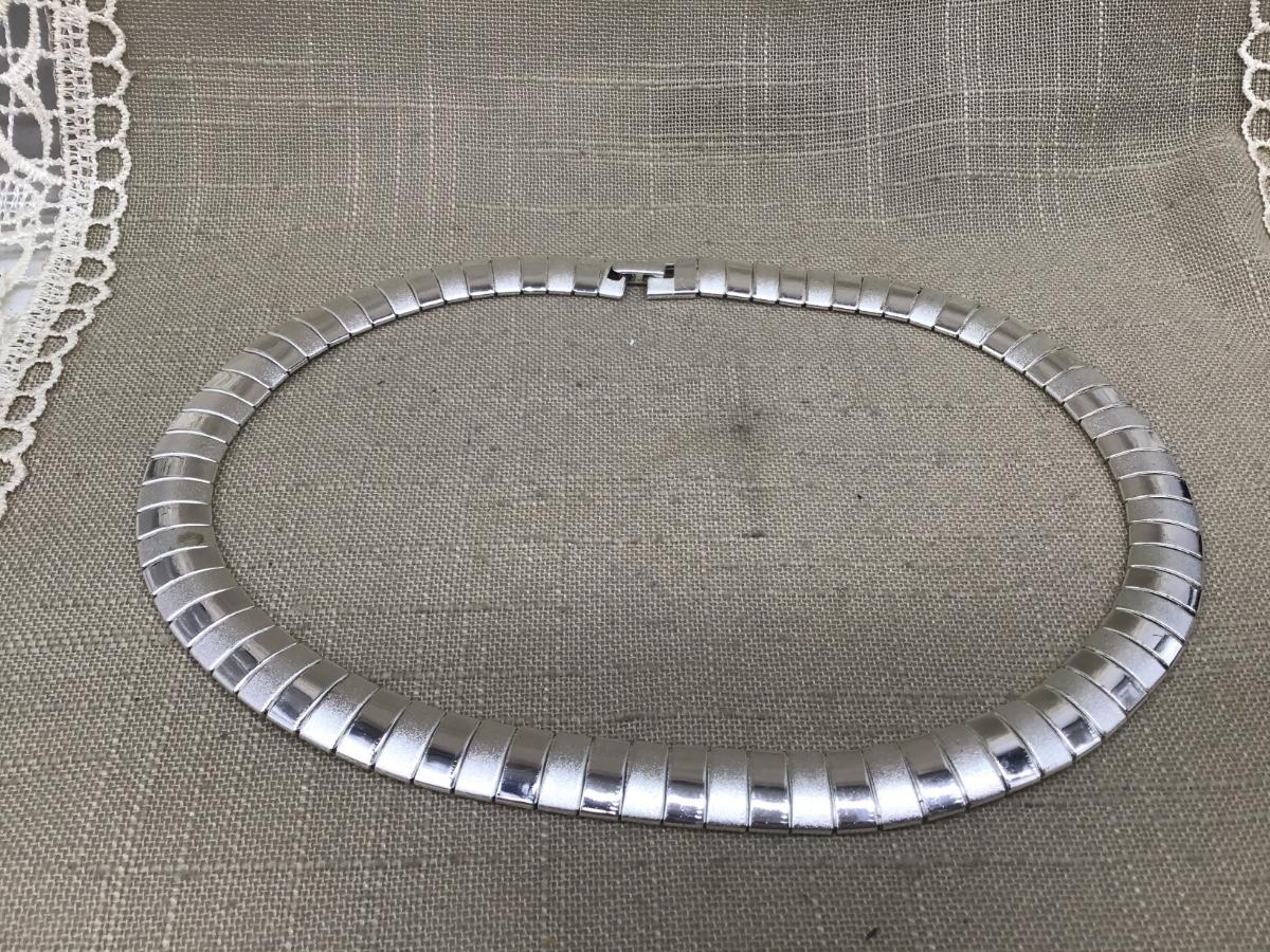 Vintage Avon Silver Flat Omega Necklace Choker Shiny Flat
