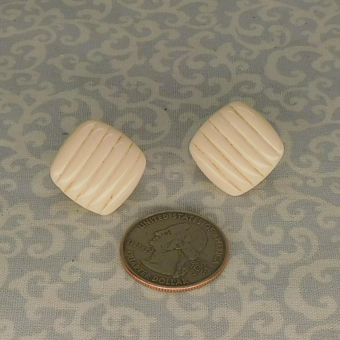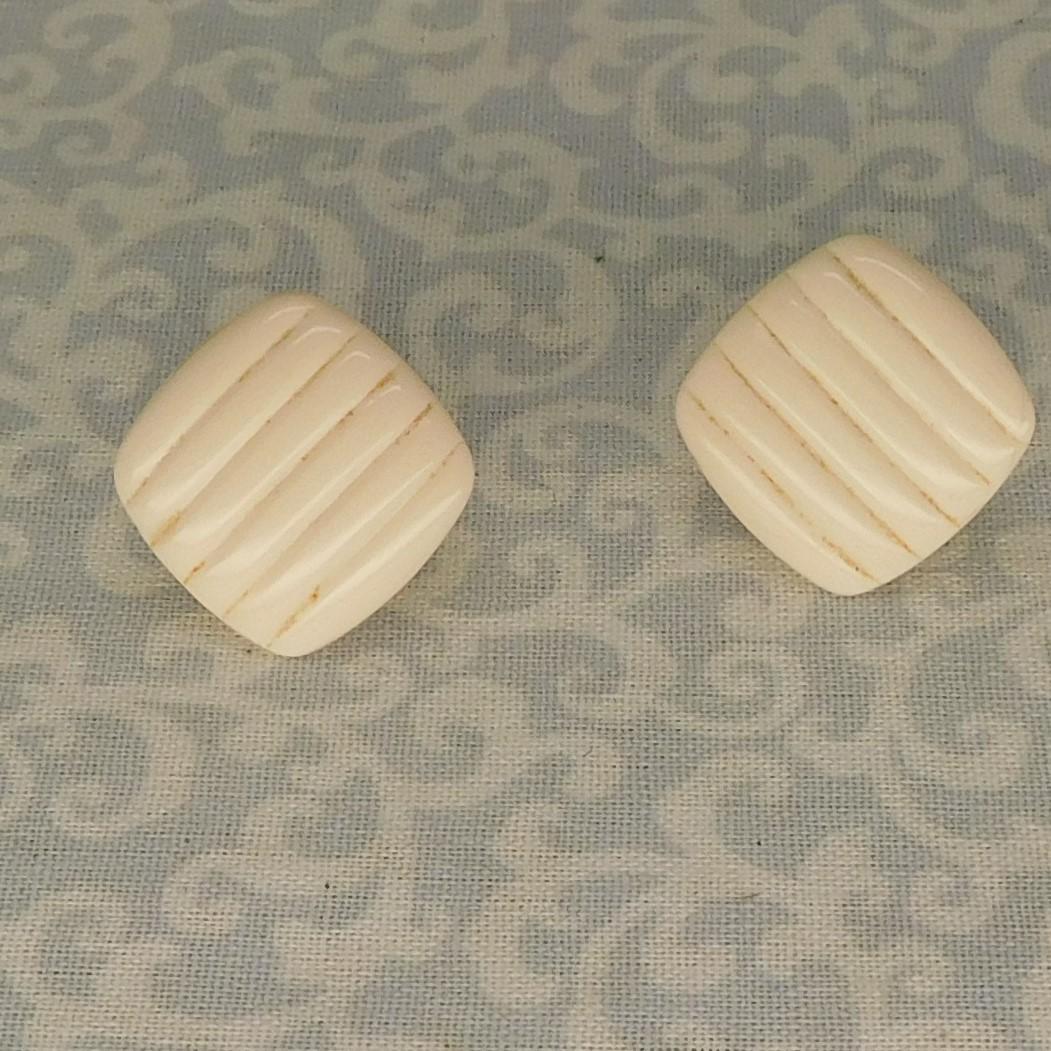 This is a vintage set of clip on earrings. These are square white earrings marked Avon. They are about 1 1/2" x 1" each.