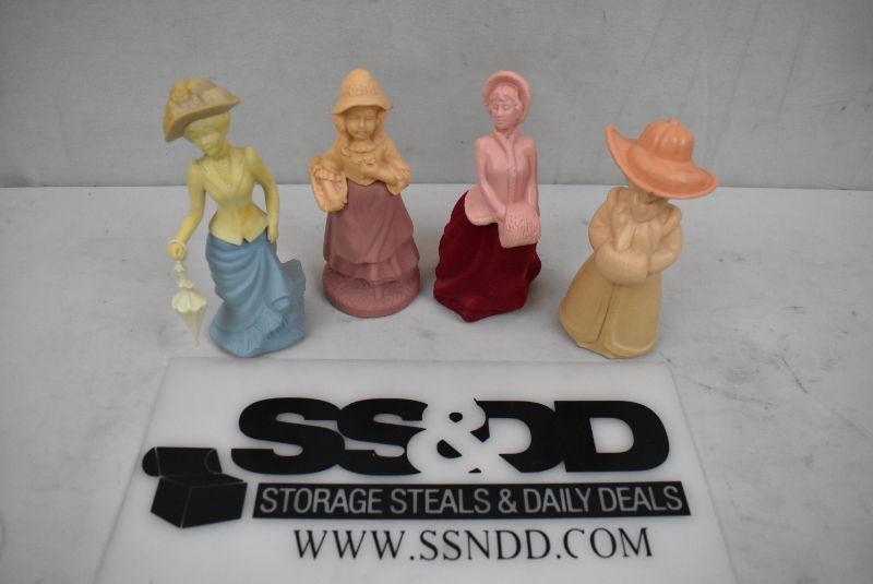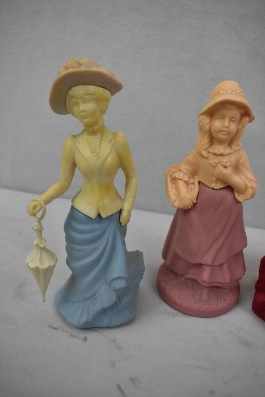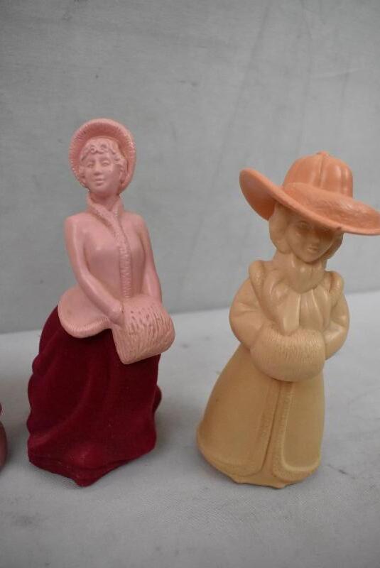 Vintage Avon Sunday Hat Ladies Perfume Figures, On the Avenue, Little Kate, Skater's Waltz, and Pretty Girl Pink
