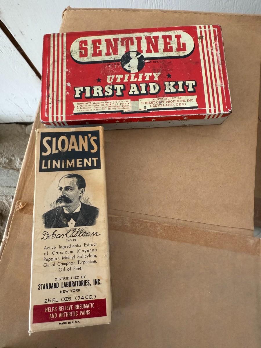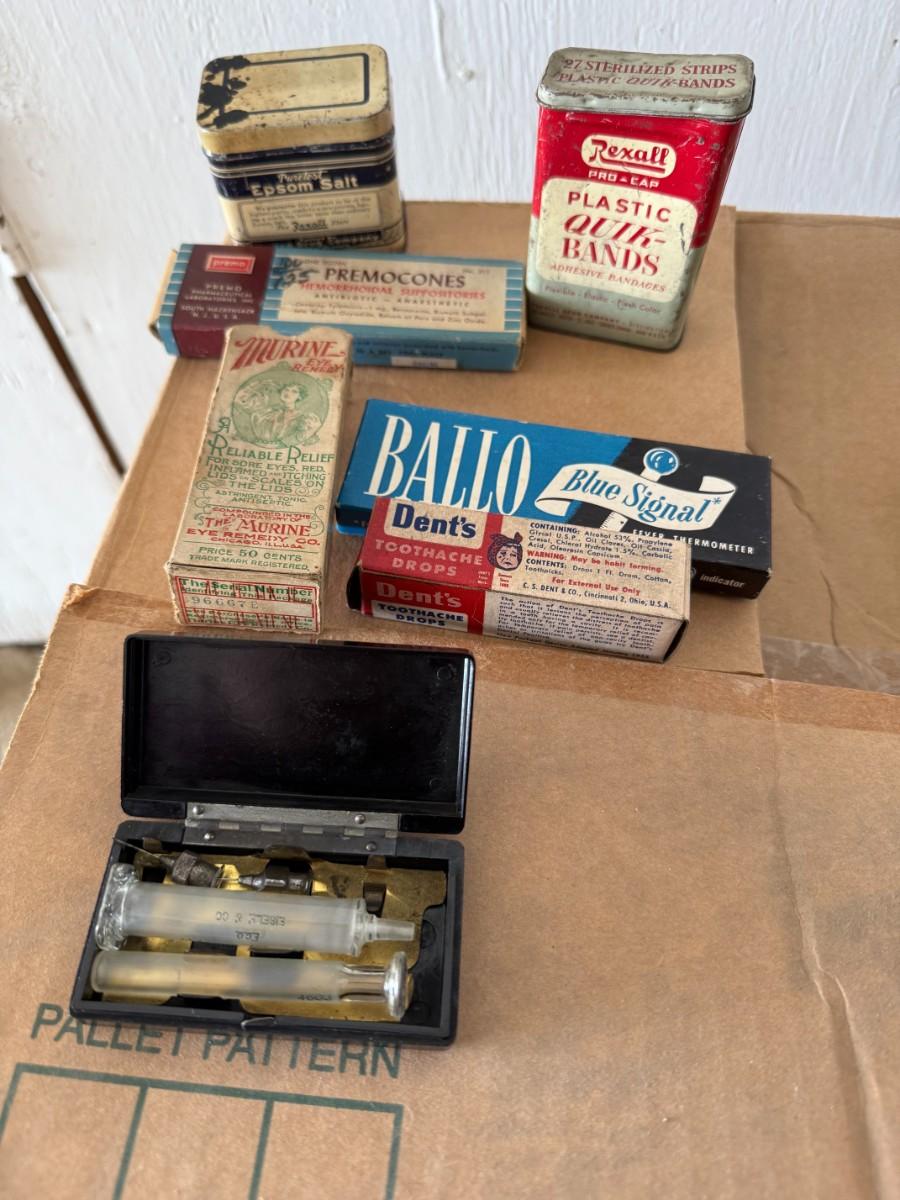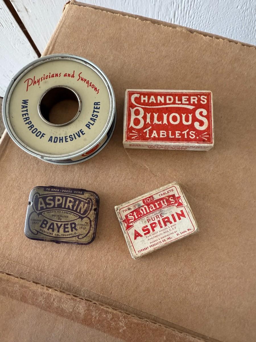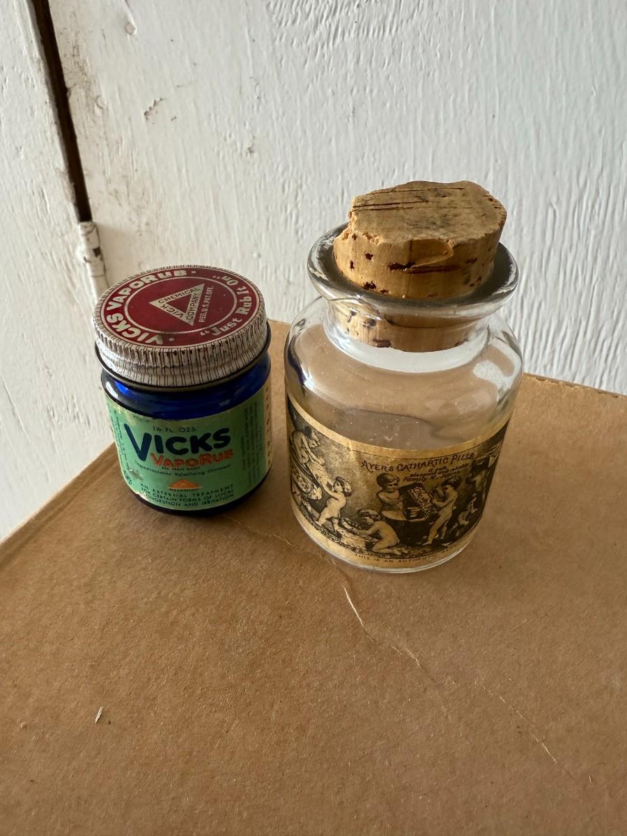 VINTAGE Ayer’s Cathartic Pill BOTTLE (AUTHENTIC REPRODUCTION) plus s other vintage medical w/ first aid