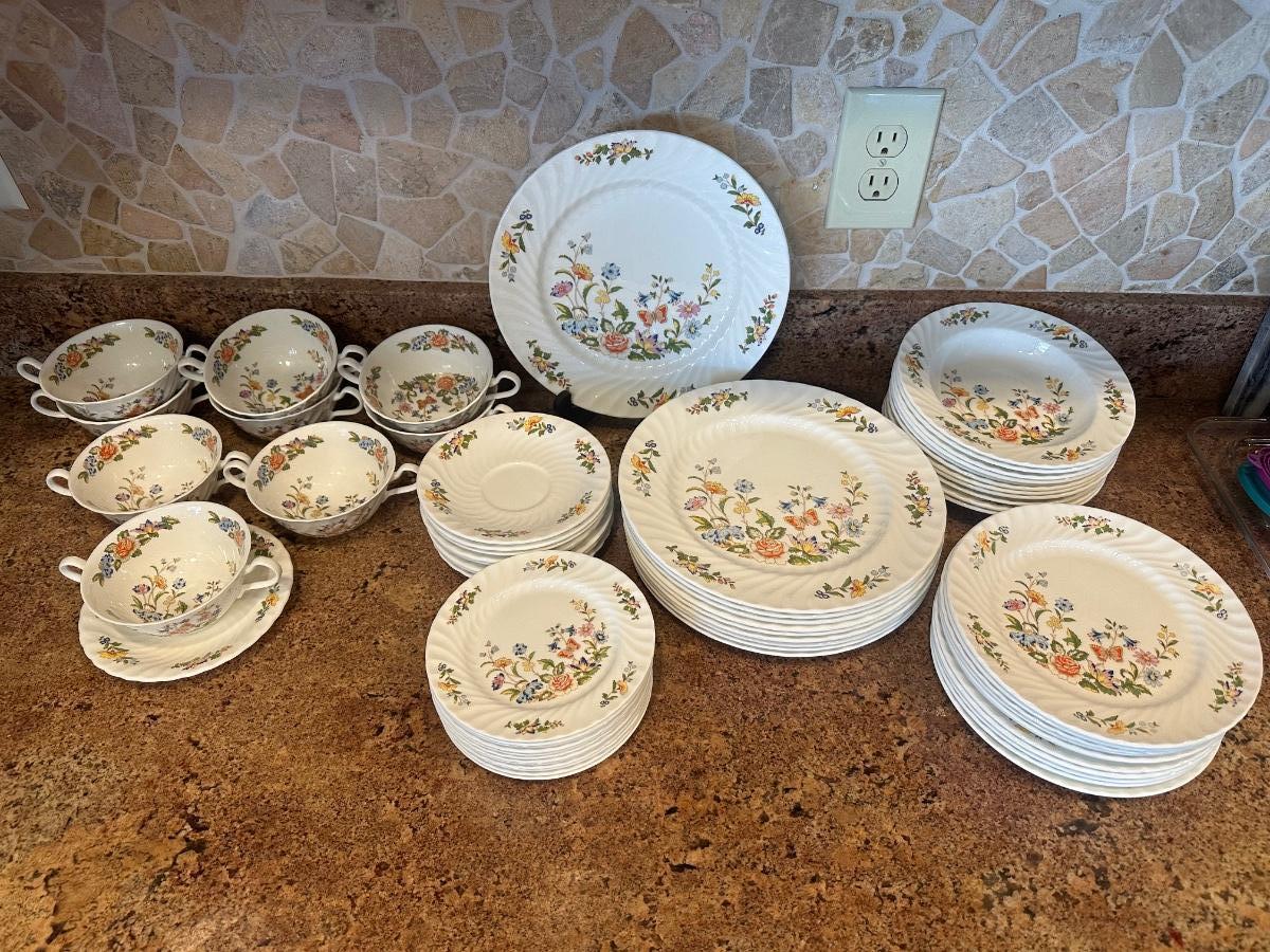 Vintage Aynsley Bone China Cottage Garden dinnerware.