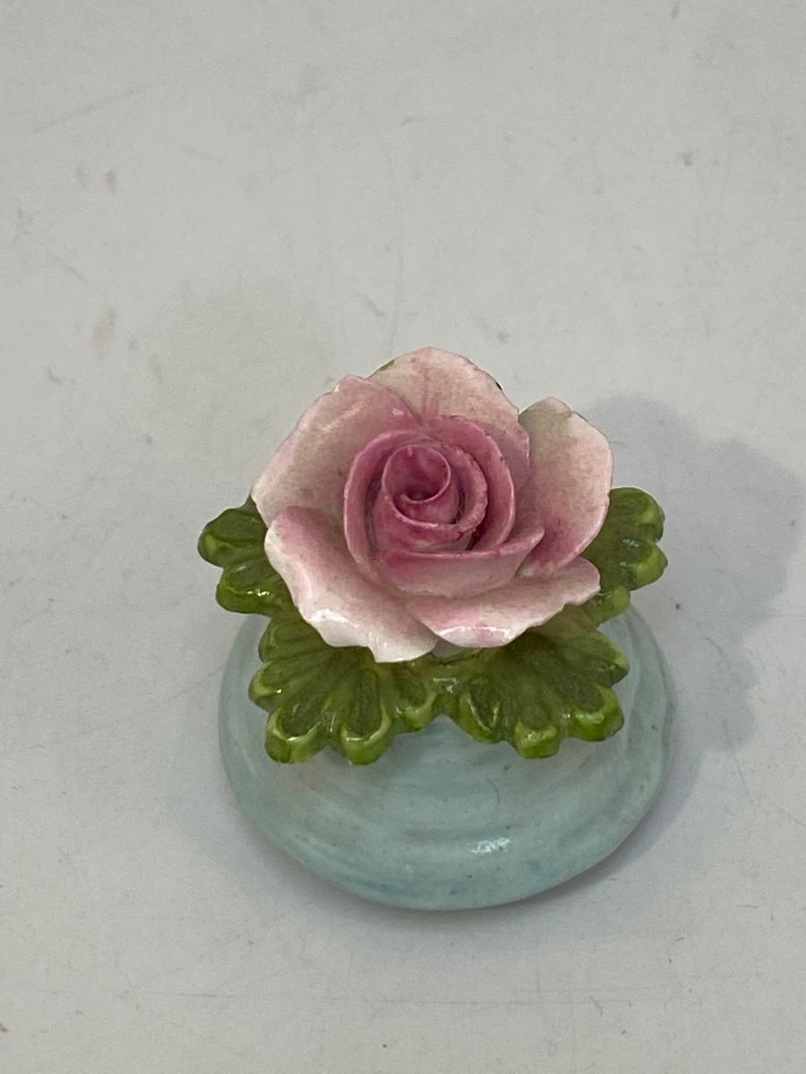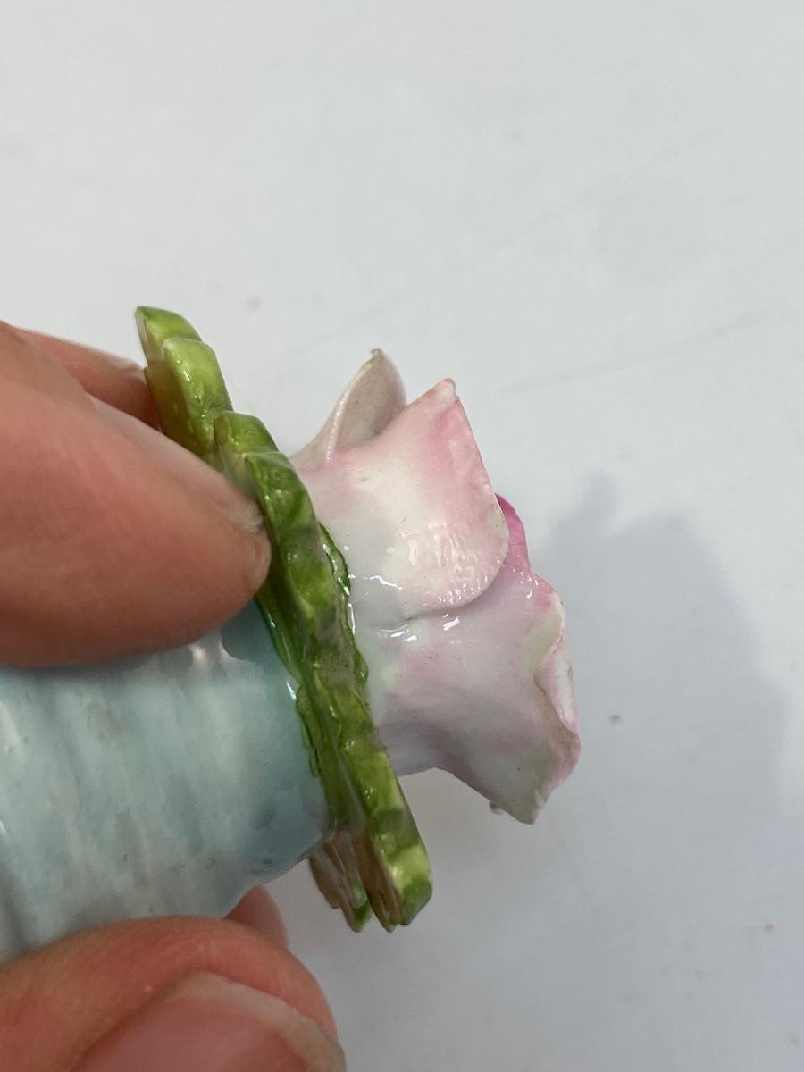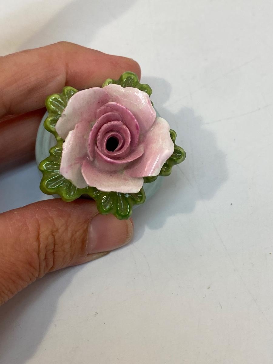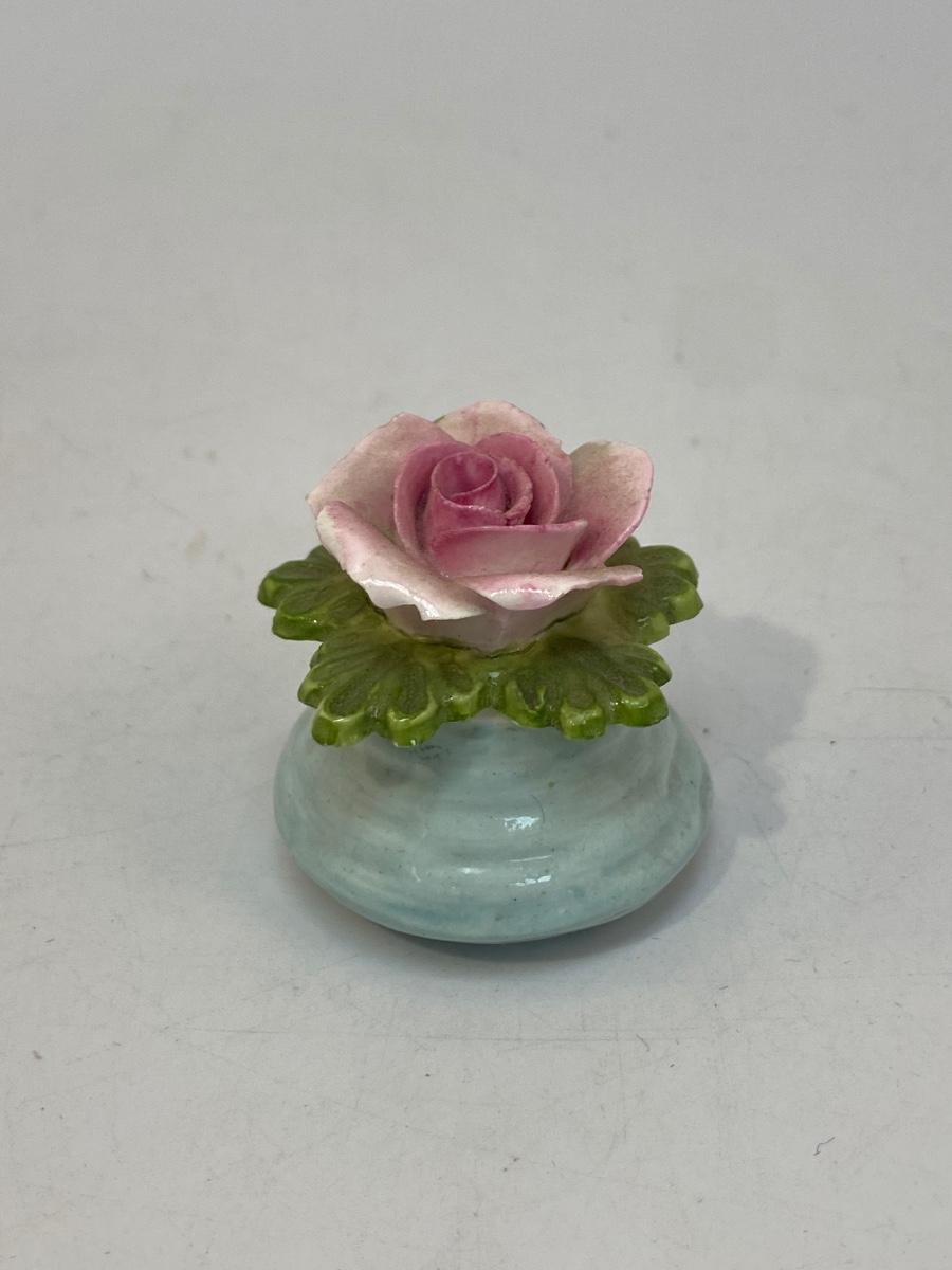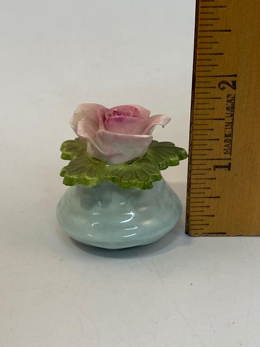 Vintage Aynsley Pink Rose Fine Bone China Powder Salt Pepper Shaker. In good vintage condition. One single hole in the top. Has bottom plug. Small, about 1.5" size. There are some rough spots along the petal edges, but they don't really look like chips.