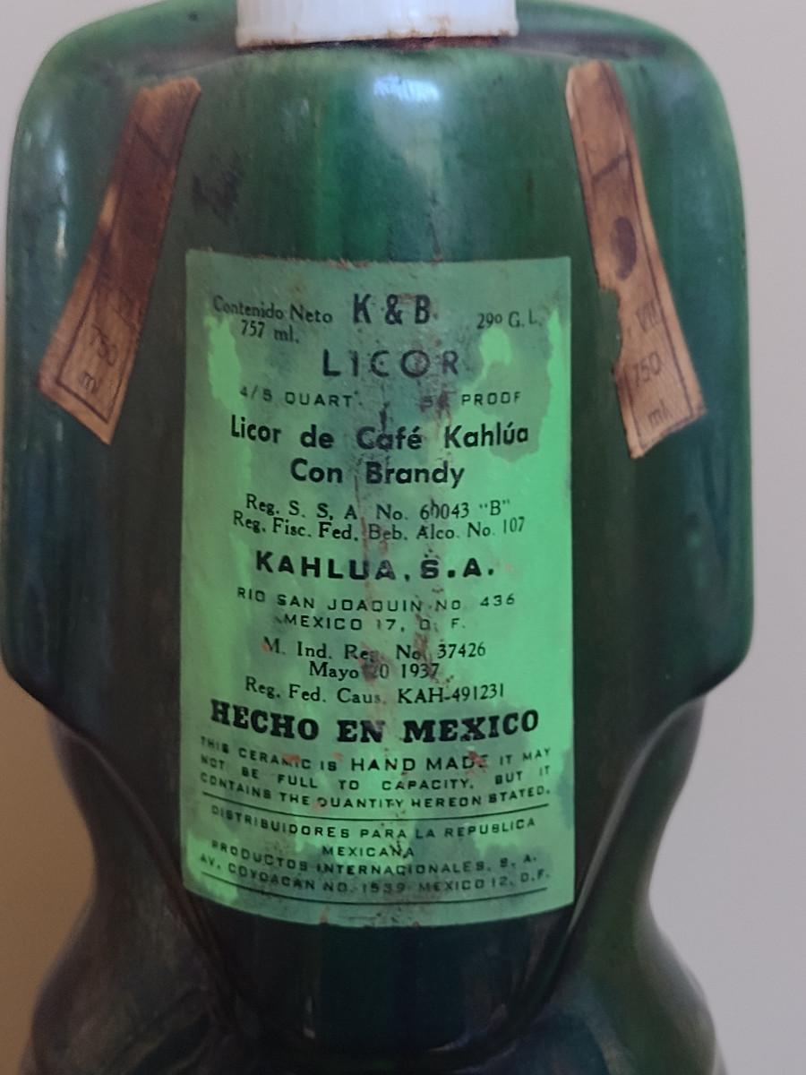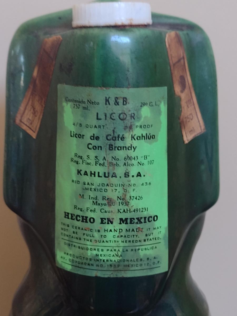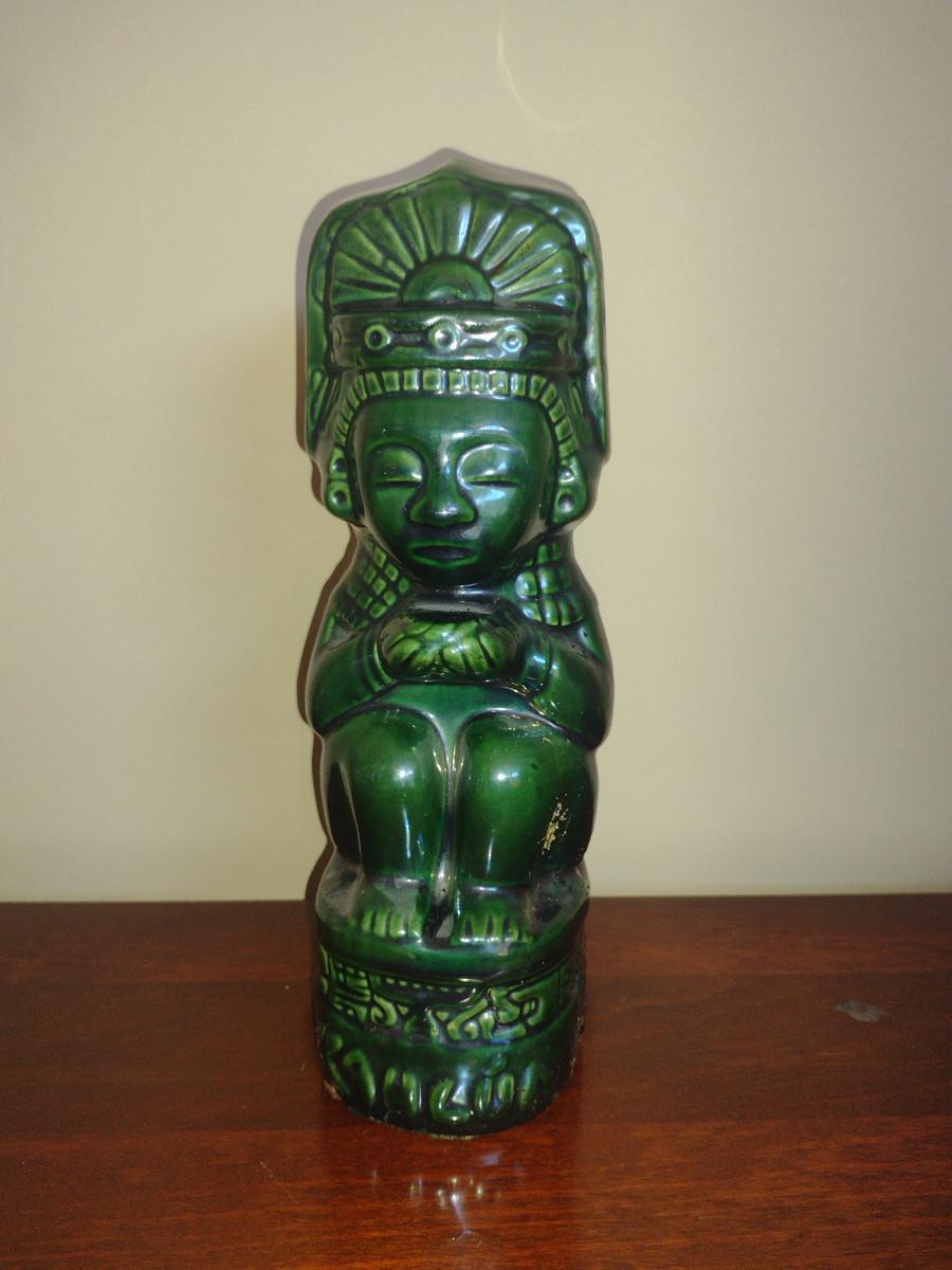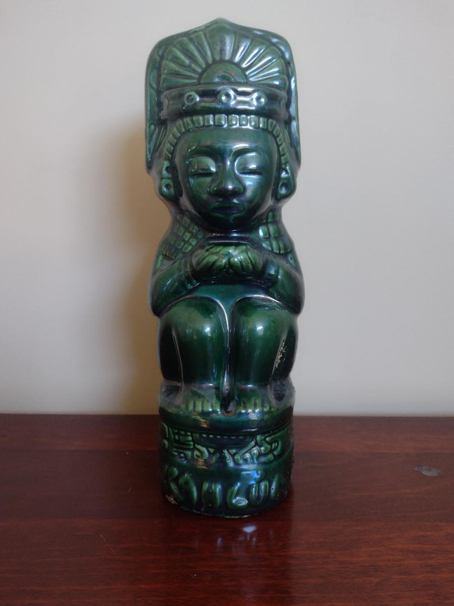 Vintage Aztec Design Glazed Ceramic Kahlua Bottle