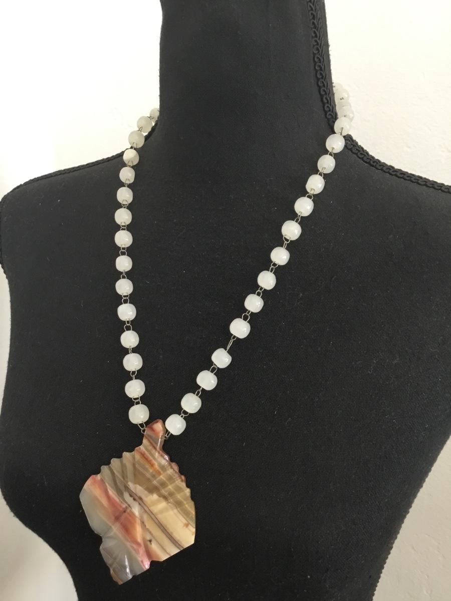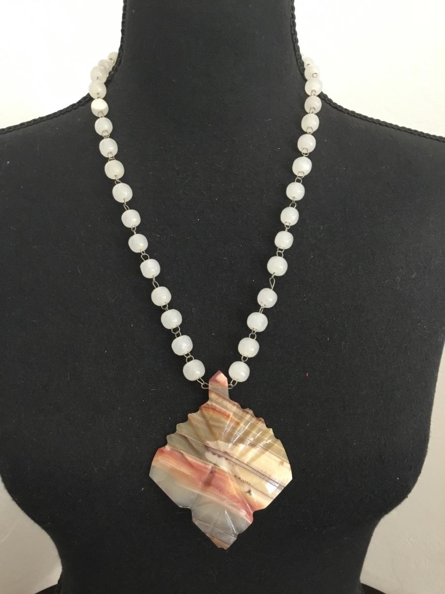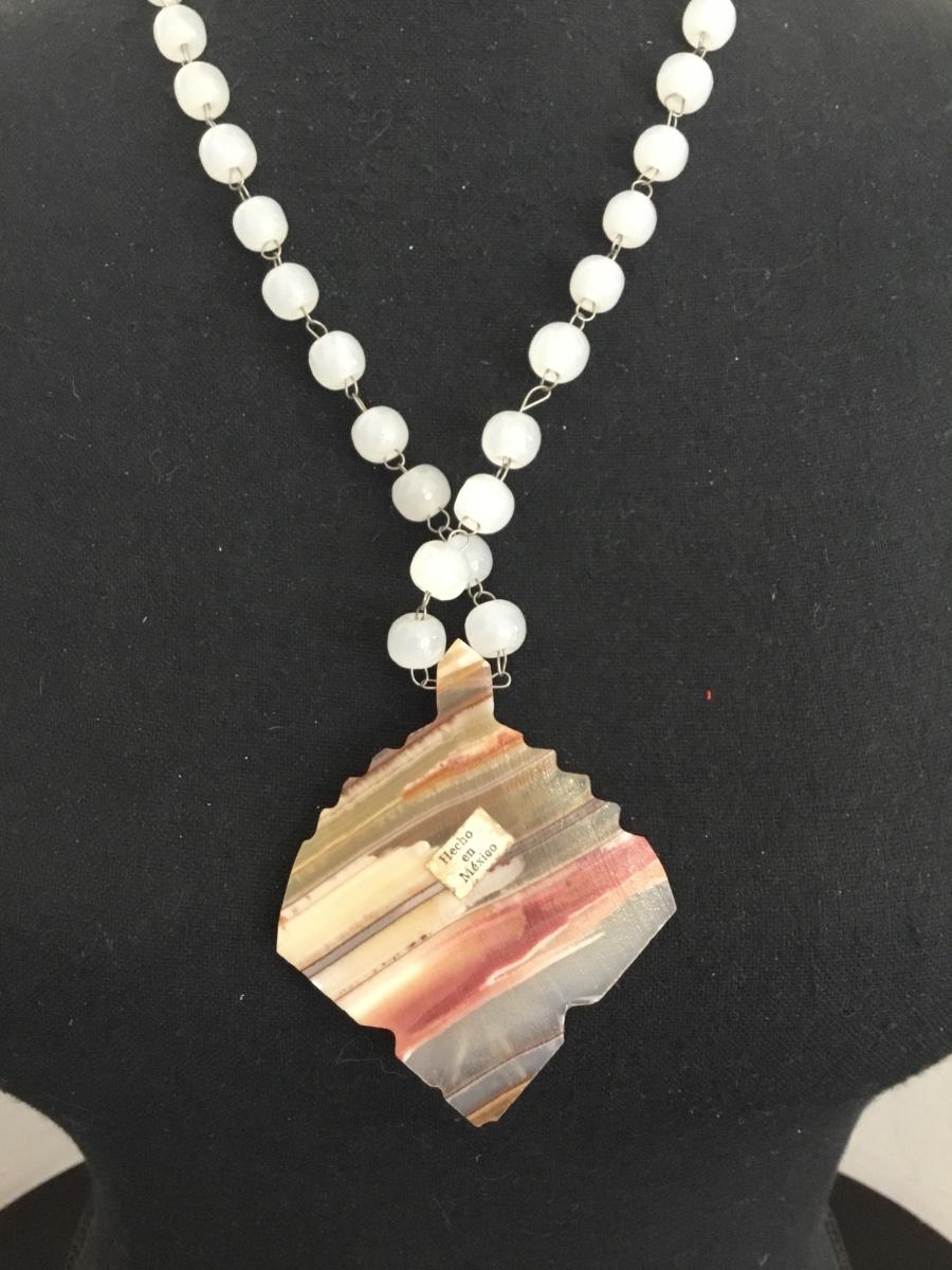 Vintage Aztec hand, carved agate Bead pendant necklace made in Mexico