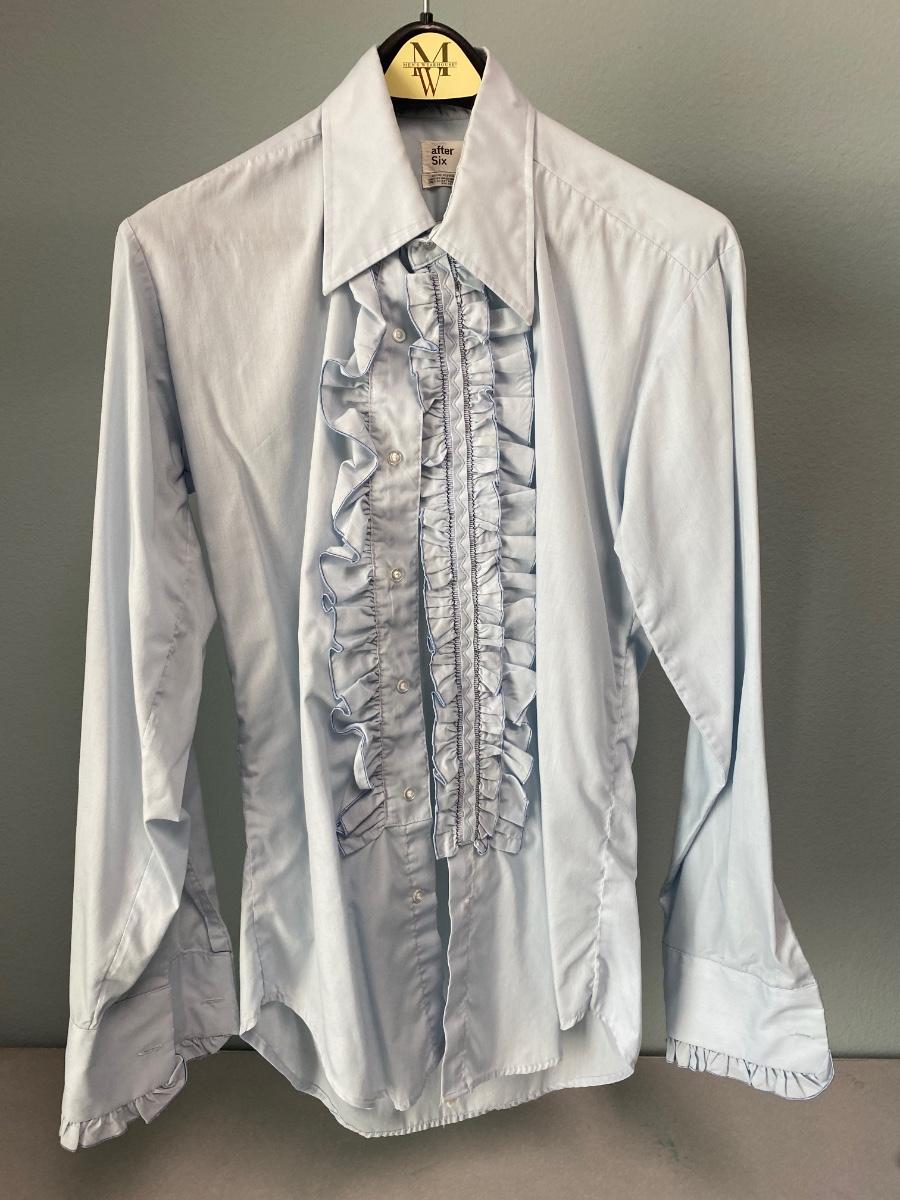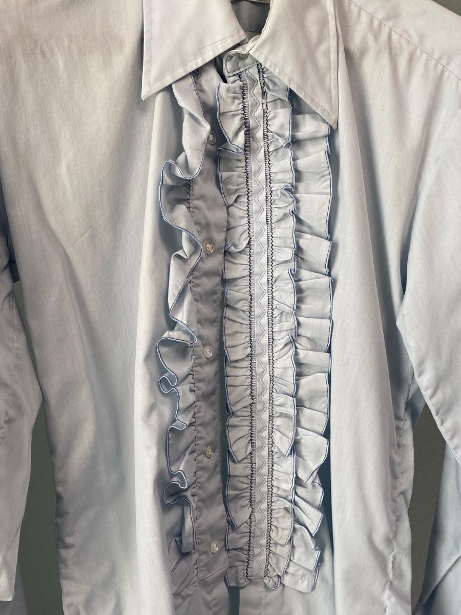 Vintage Baby Blue Tuxedo Ruffled Dress Shirt. Small size. Good condition.