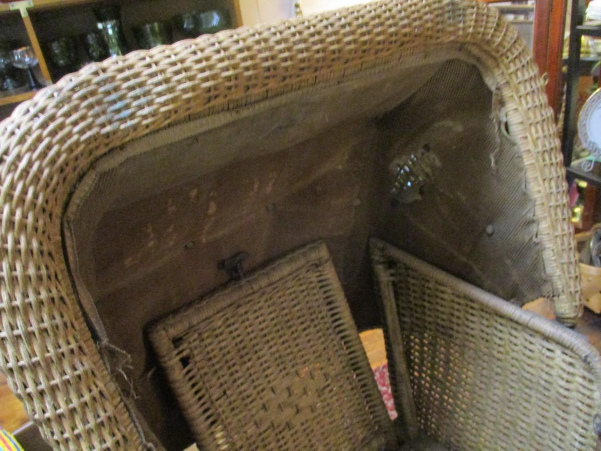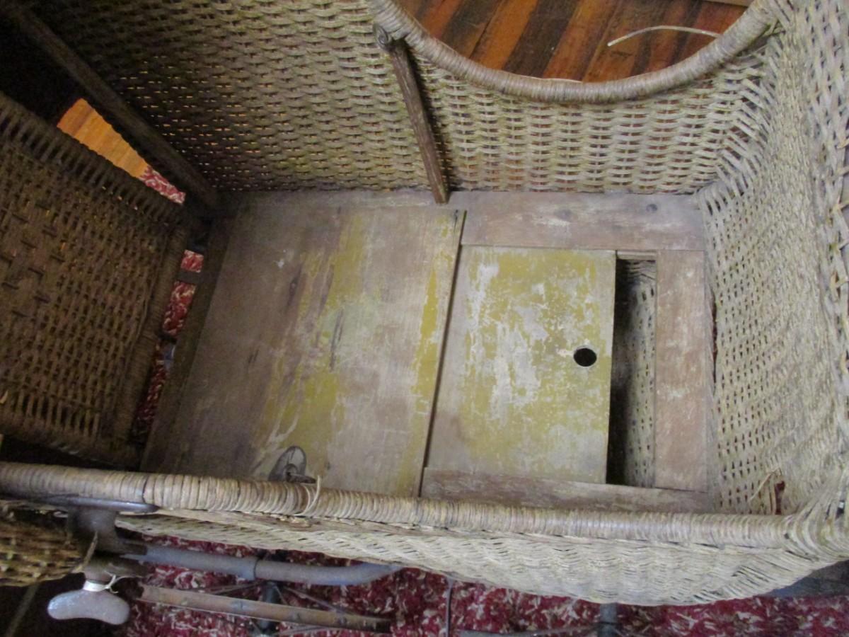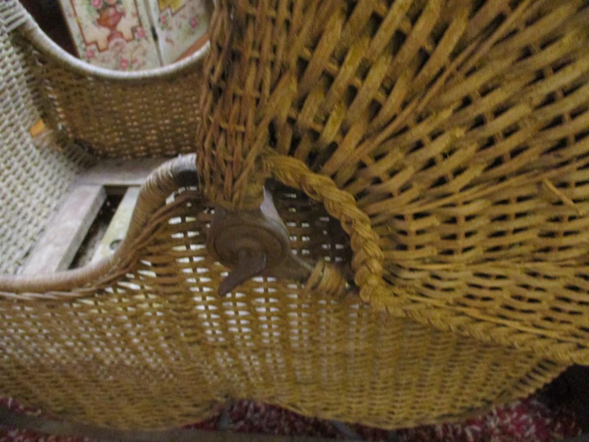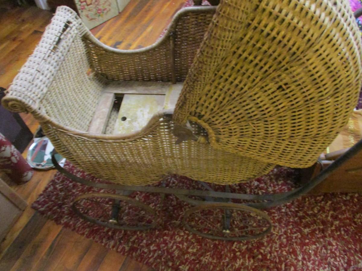 Vintage Wicker Push Baby Carriage with Bonnet - F