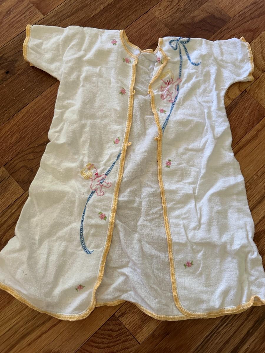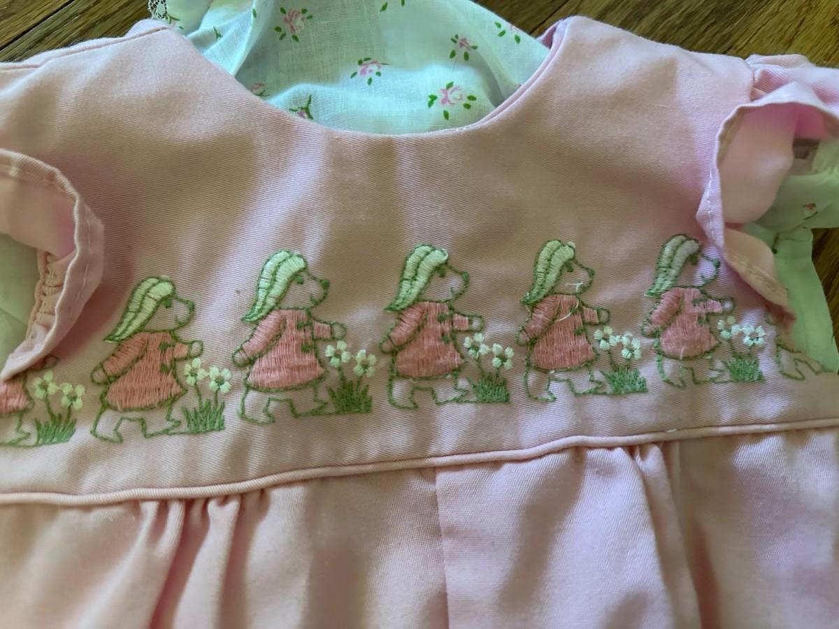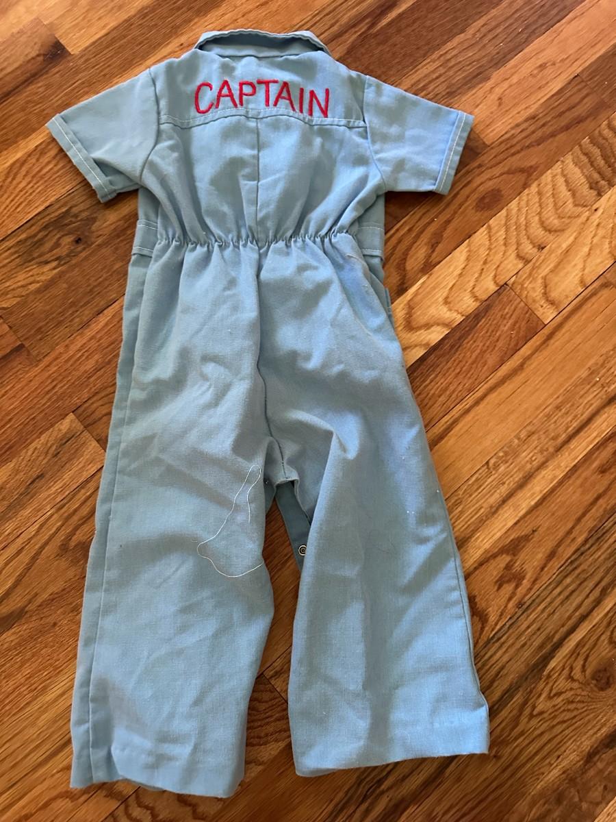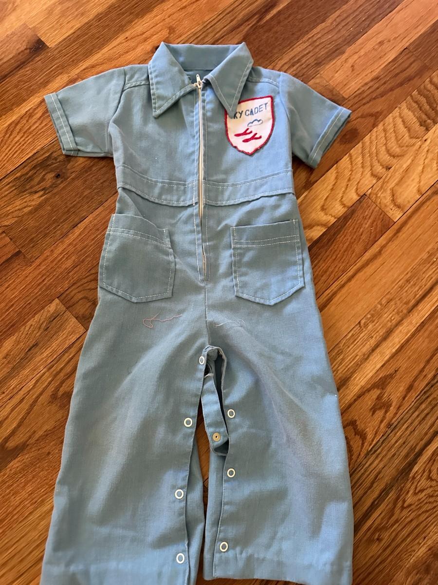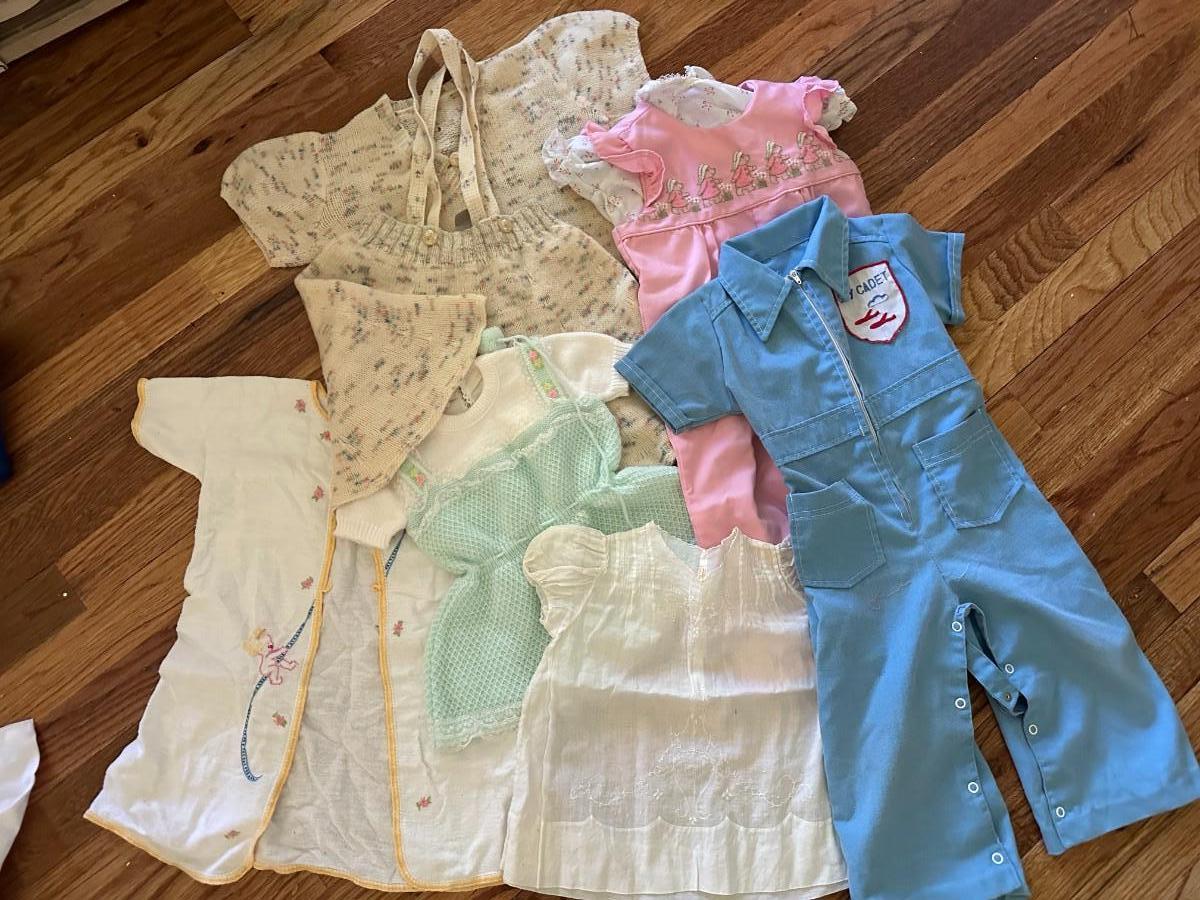 Check out the adorable pilot and Paddington Bear jumpsuits. Linen dress hand made in Portugal. Clothes date from 60's to 80's.