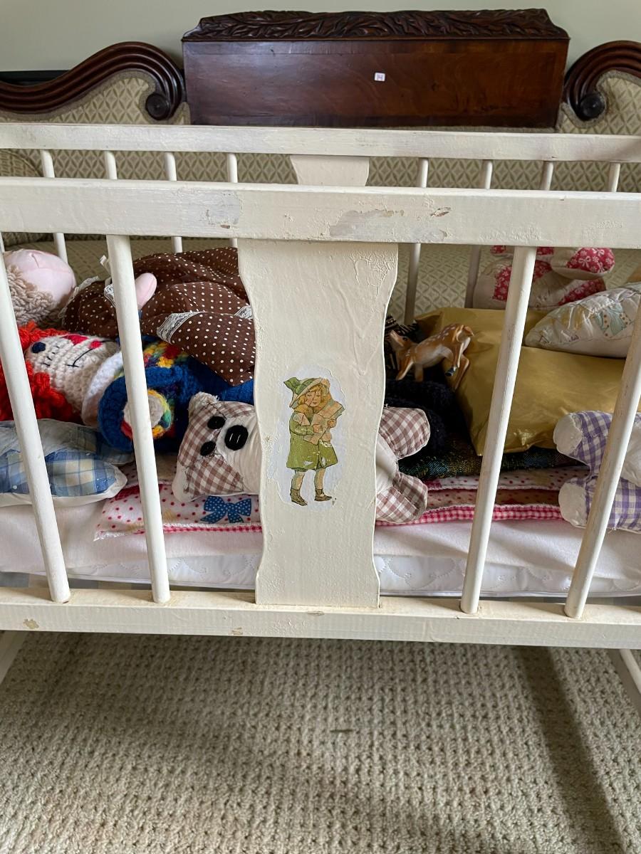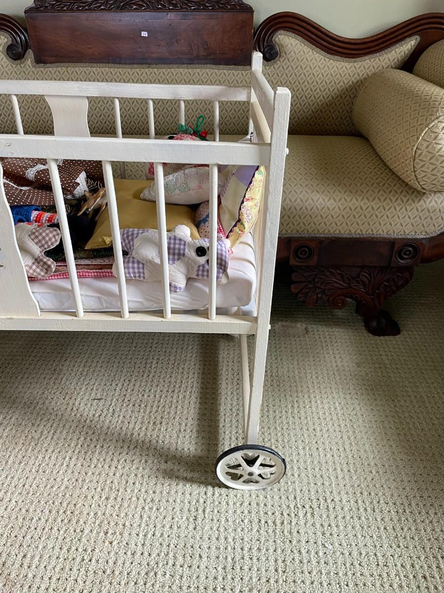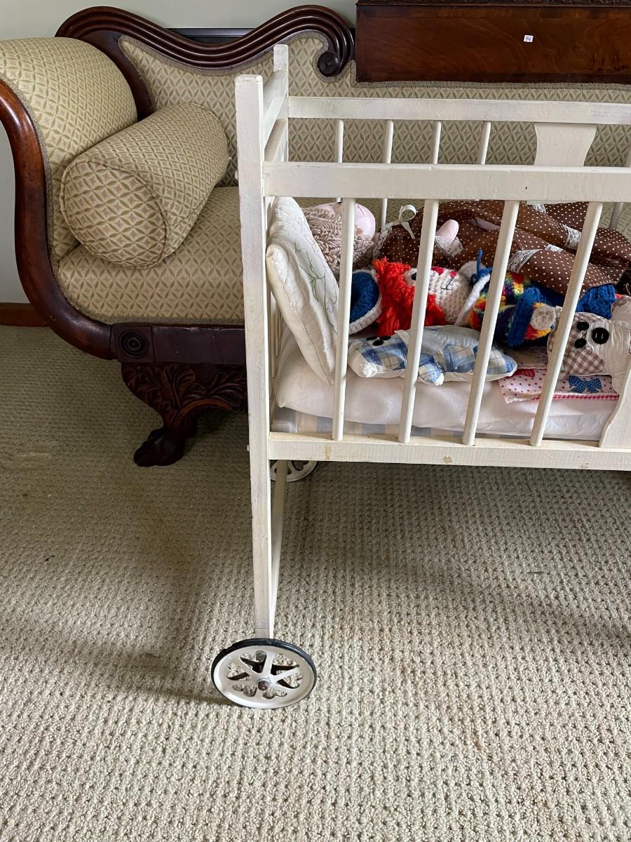 Vintage Baby Crib with Wheels with Vintage Dolls/Toys