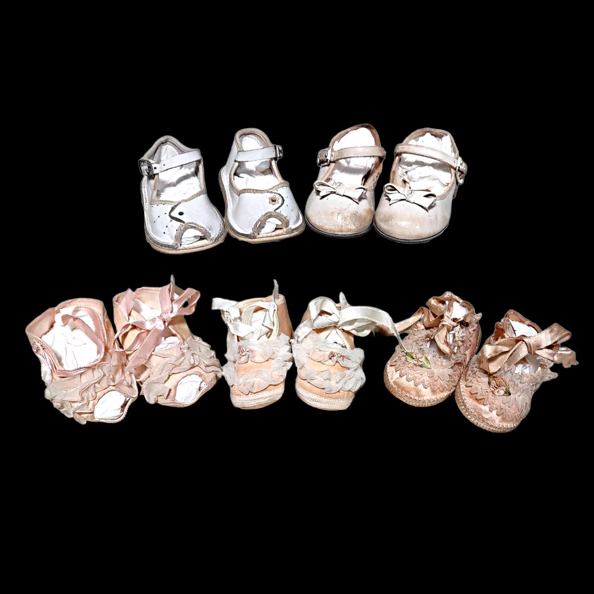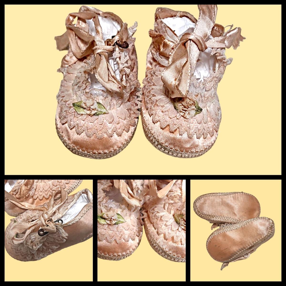 4. Pink Baby Shoes w/ lace, floral appilique and pink satin tie ribbons.