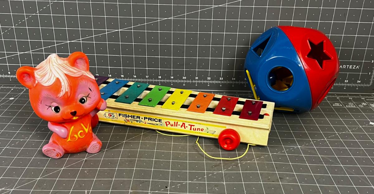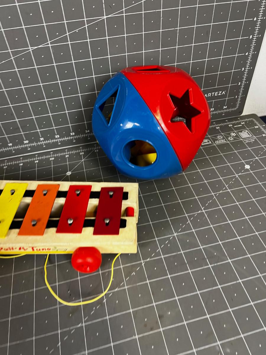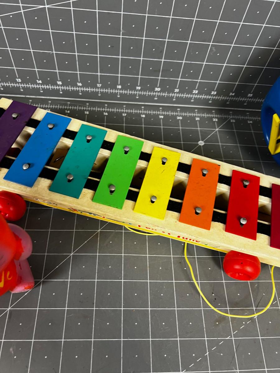 Vintage Baby Toys: Bear, Xylophone, Square Peg