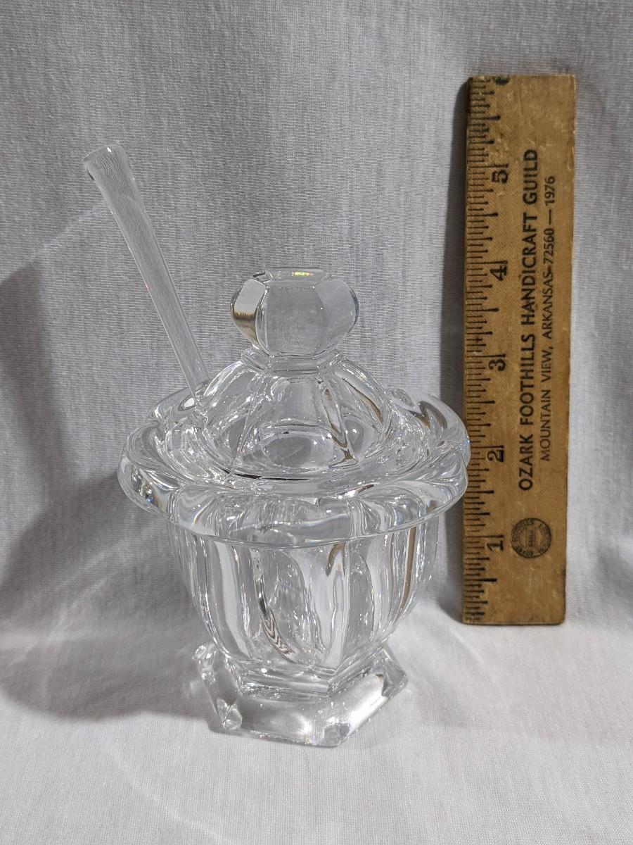 Like New Baccarat Crystal France Harcourt Bretagne Mustard Pot w Spoon