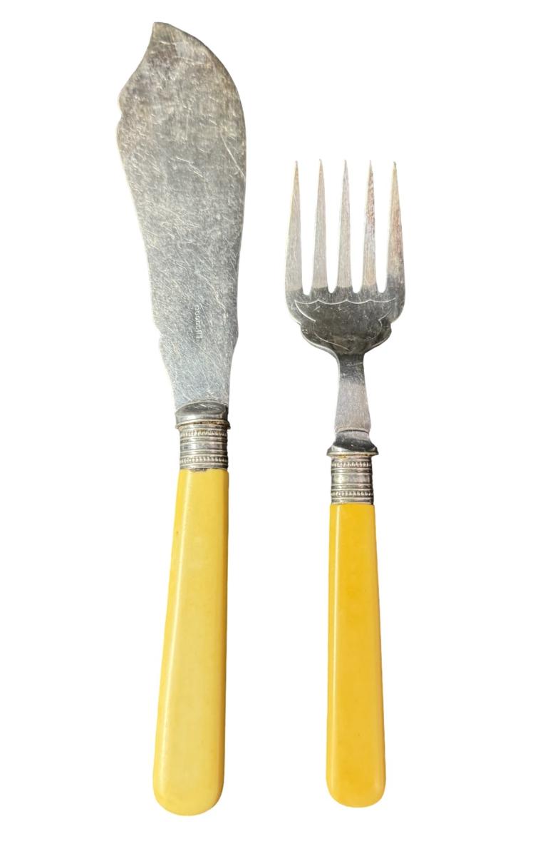 Vintage Bakelite Handled Fish Serving Knife and Fork Set