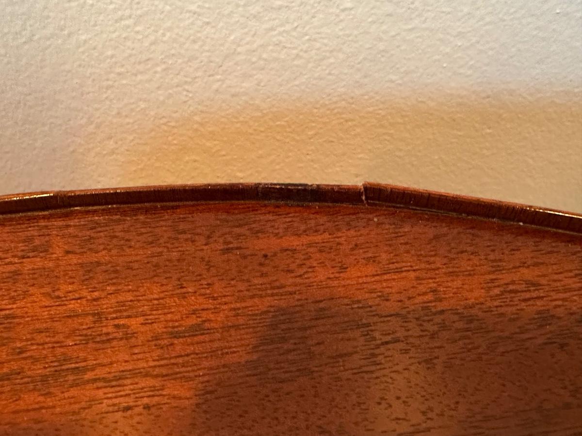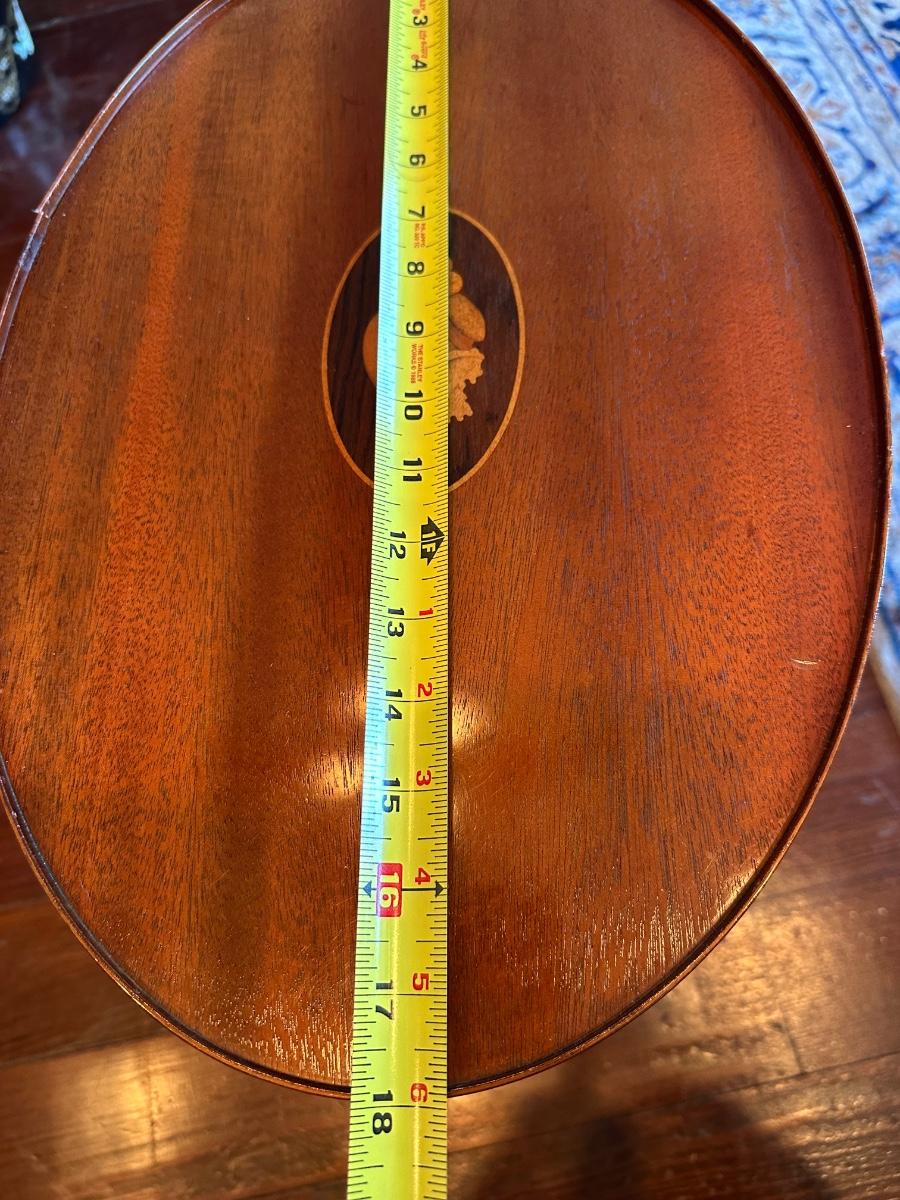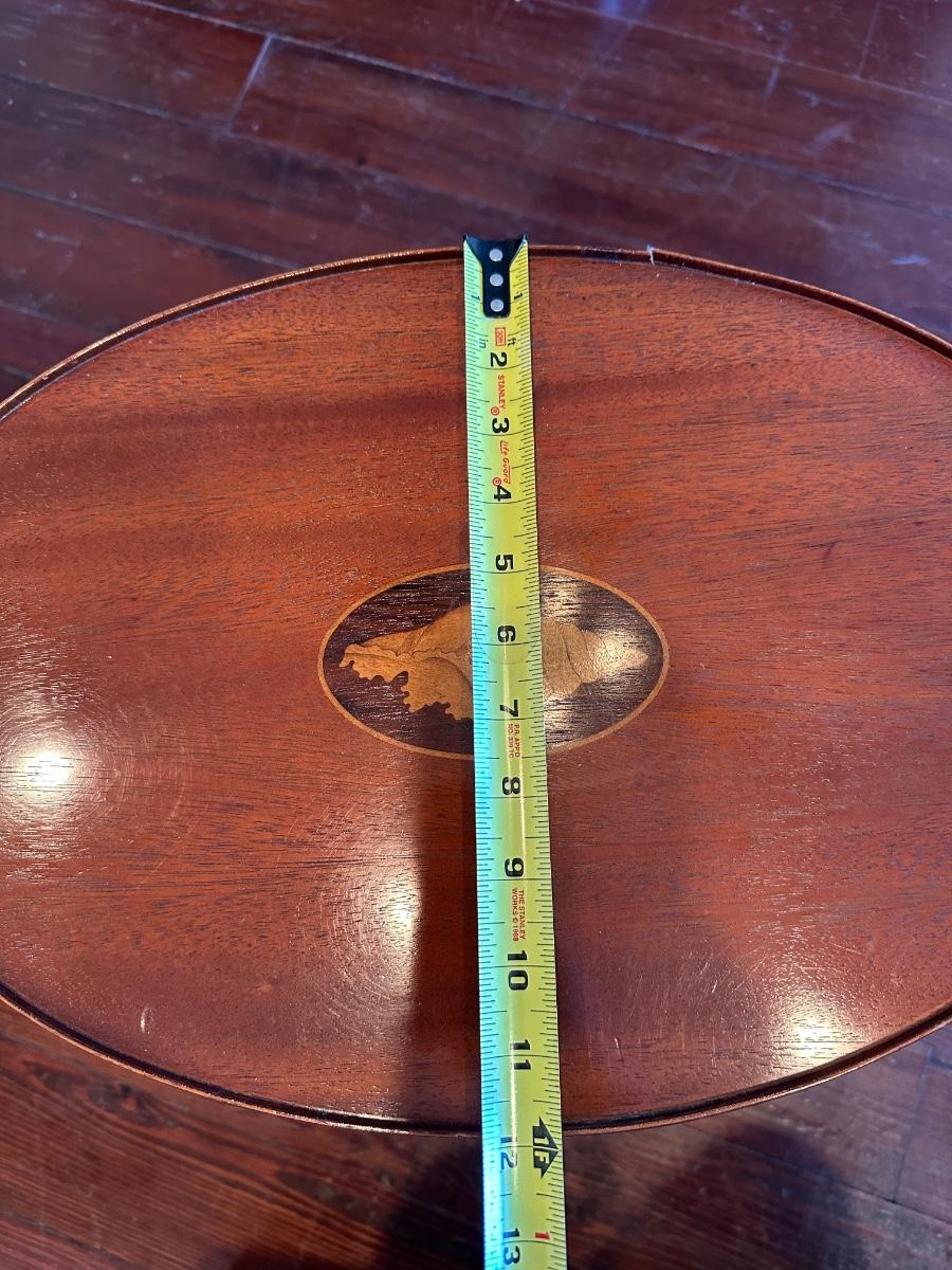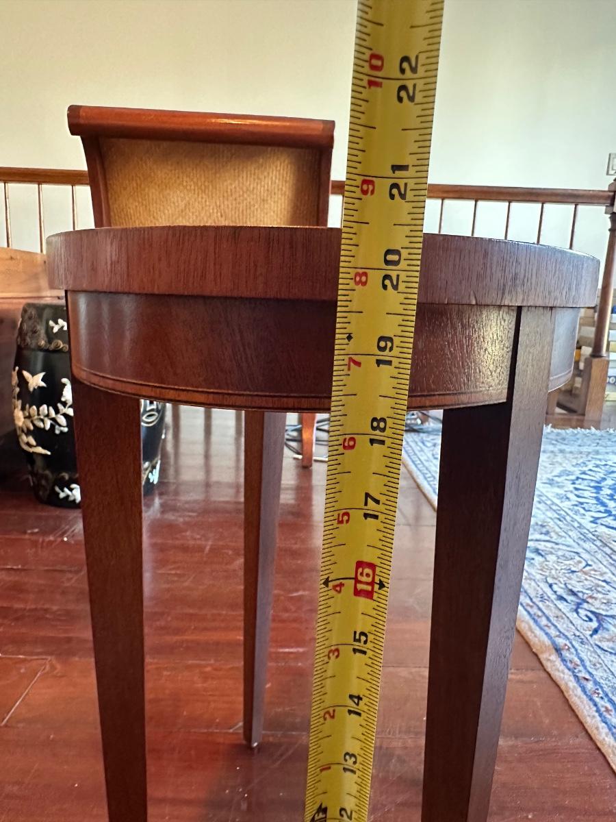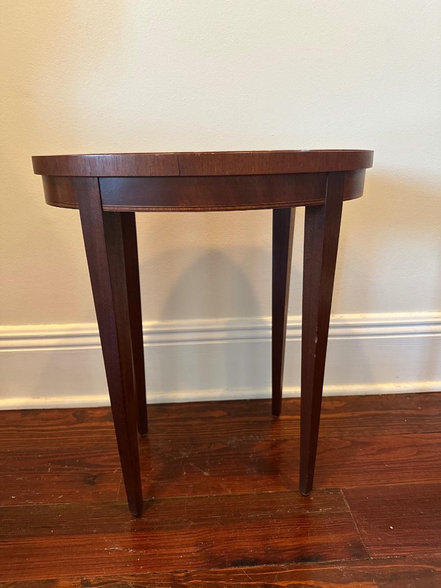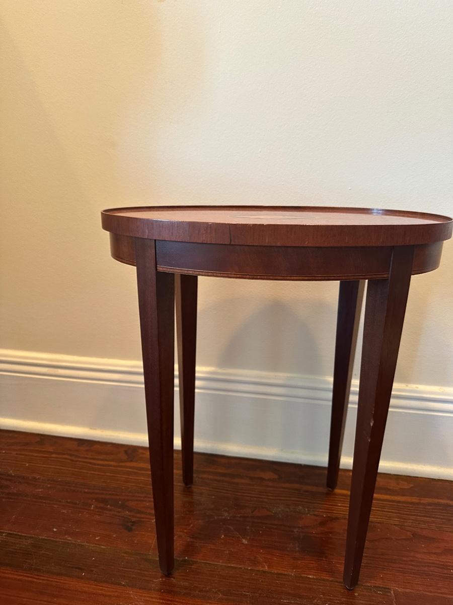 Vintage Baker Furniture Mahogany Wood Shell Inlay Side Table. Small veneer split/chip on the rim, as shown.