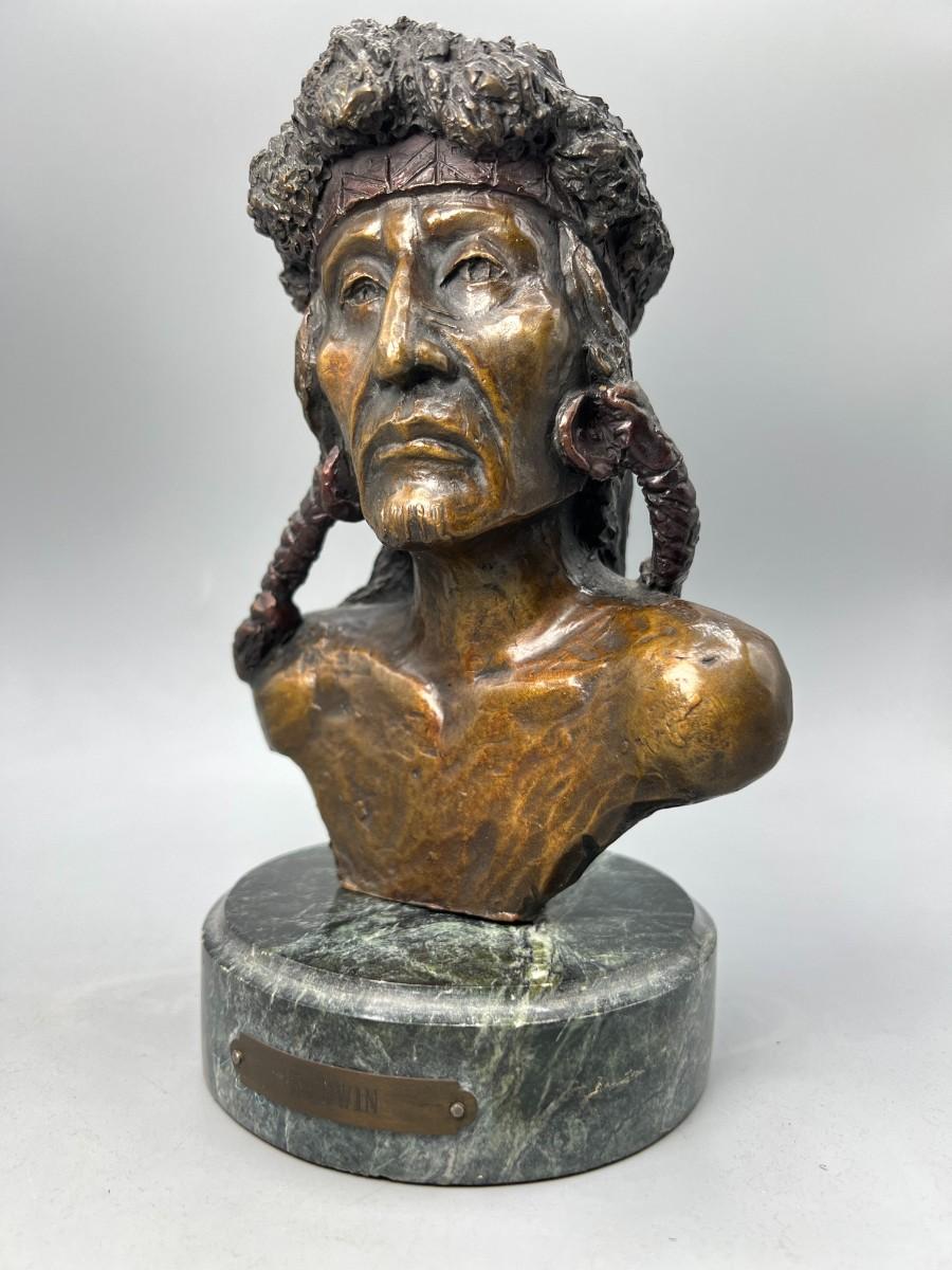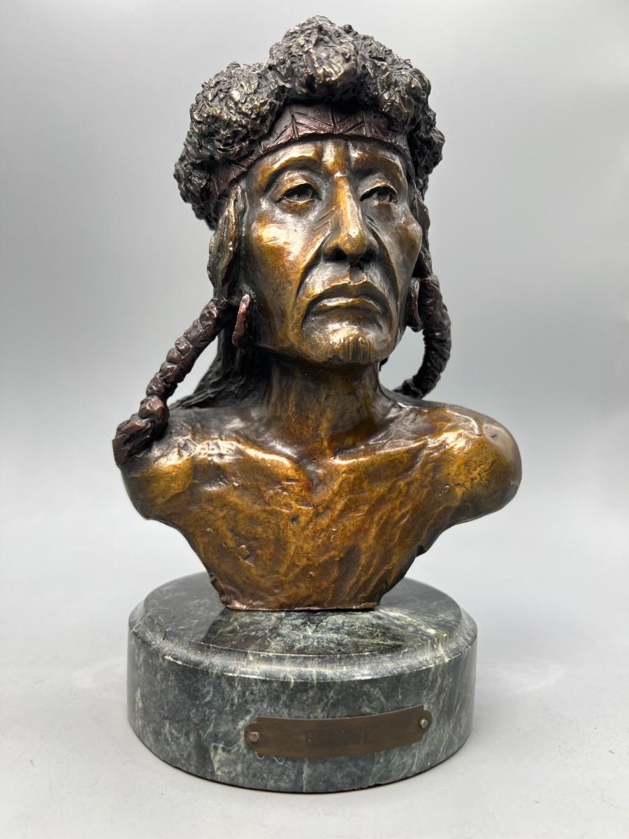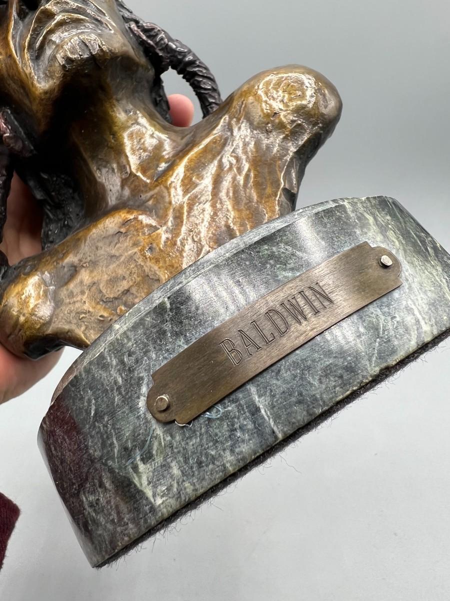 Vintage Baldwin Bronze Native American Warrior American West Head Bust Sculpture