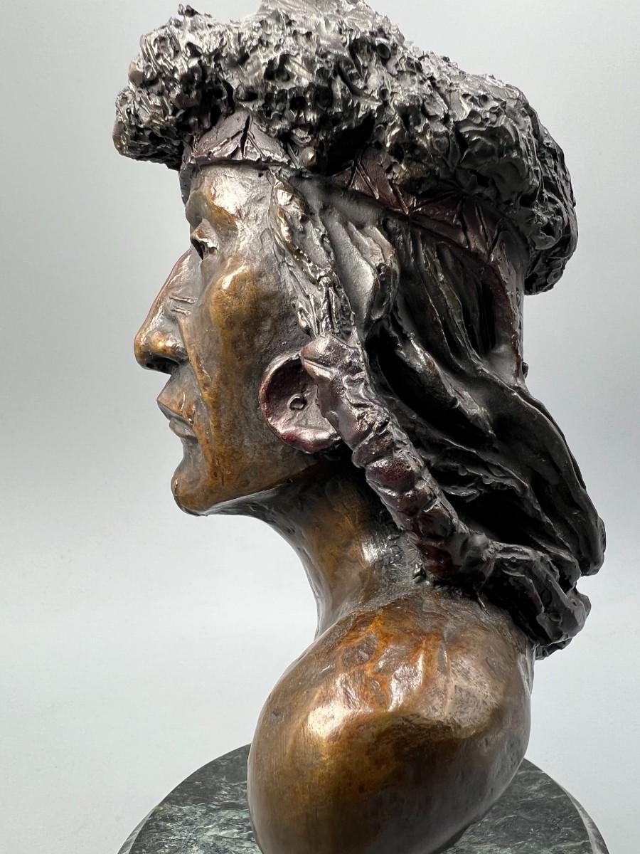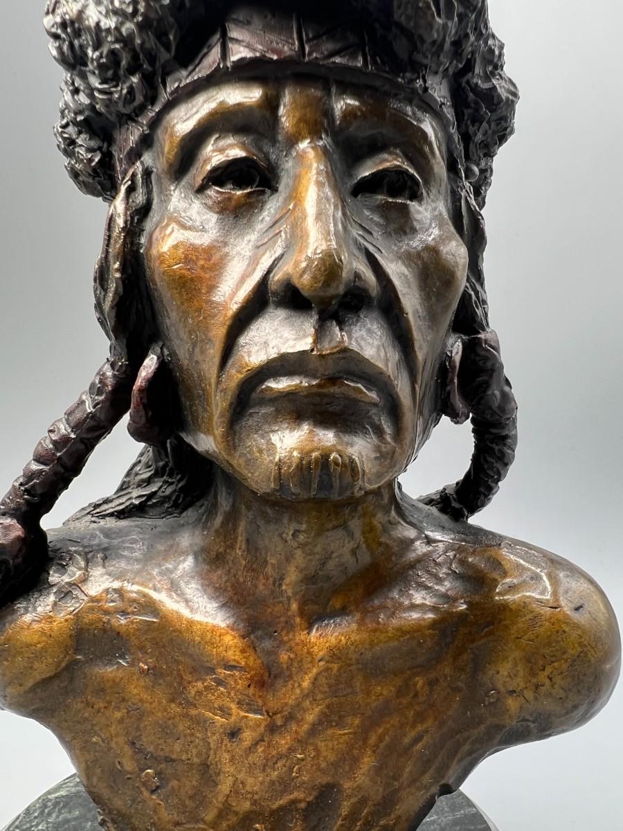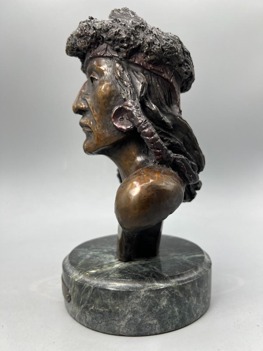 Vintage Baldwin Bronze Native American Warrior American West Head Bust Sculpture