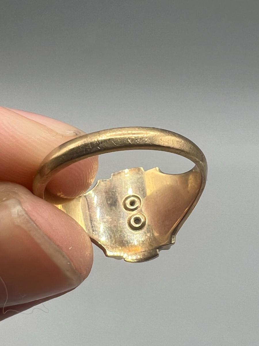 There is no significant damage to the ring and is in good collectible or wearable condition. Check pictures for more details and for sizing.