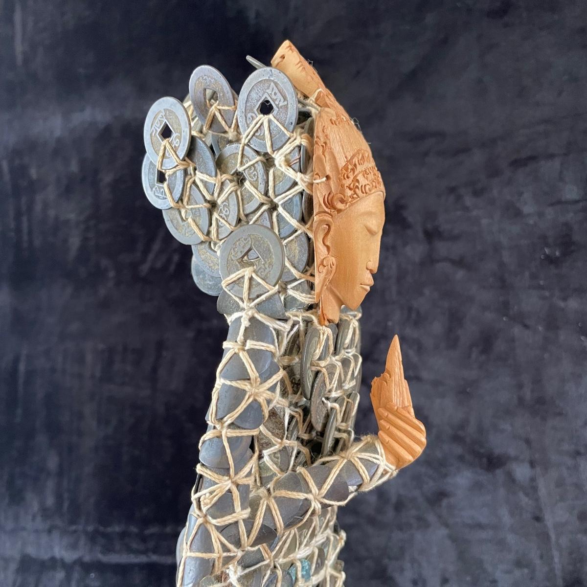 Vintage Balinese Indonesian Folk art coin doll. Measures 17”H x 5”W x 5”L