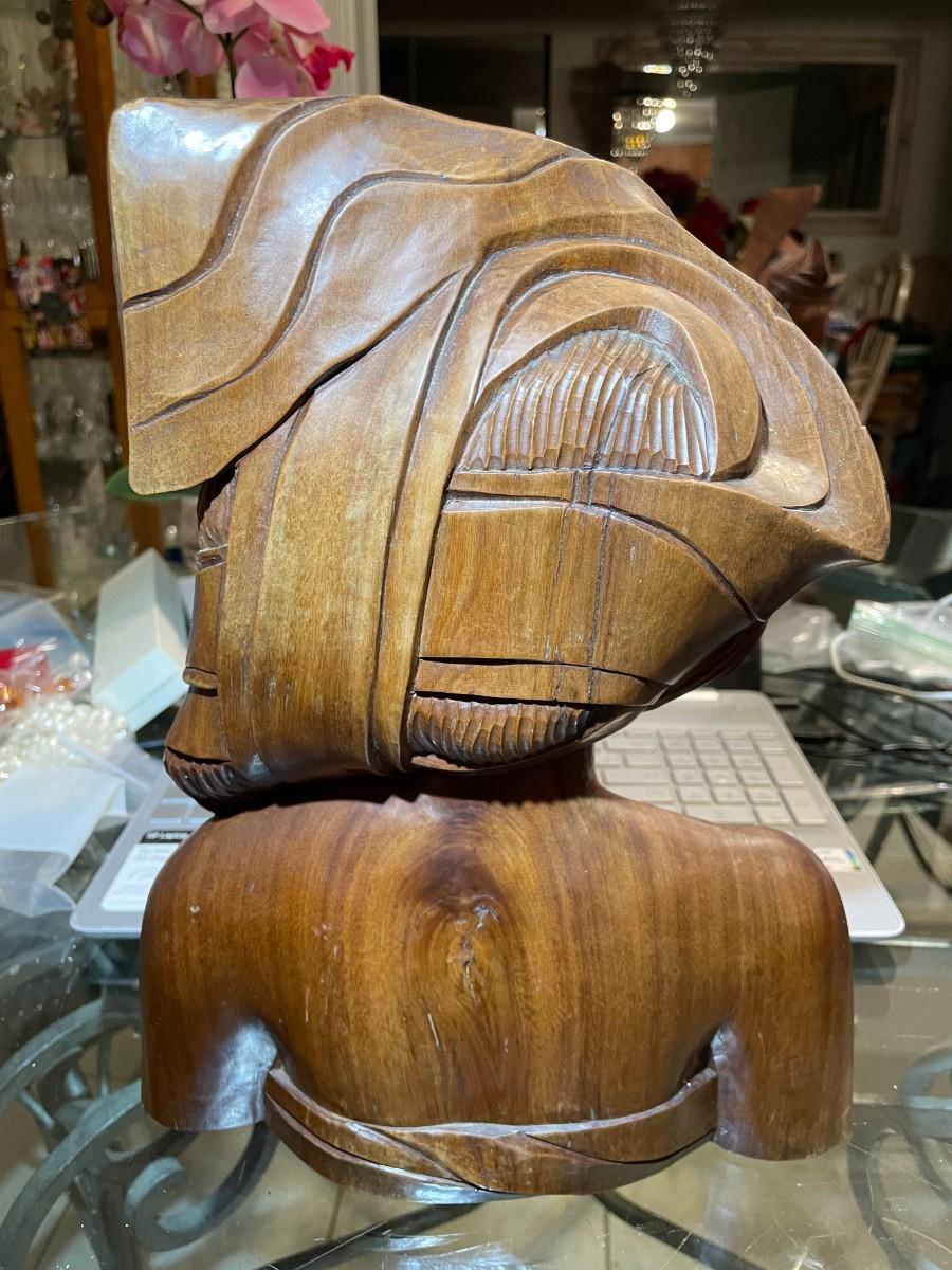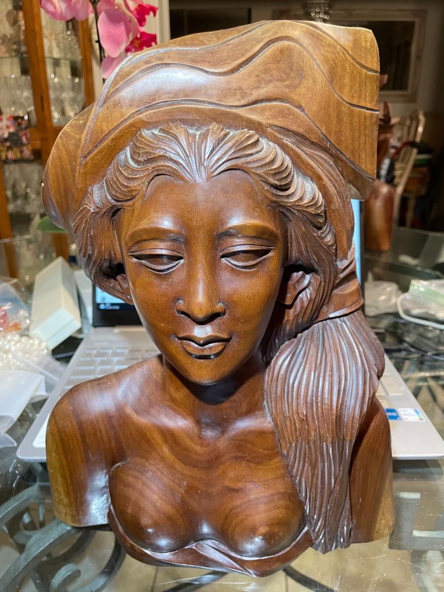 Vintage Balinese Wooden Girl Bust Carving 12.5" Tall in Good Preowned Condition. Very Heavy.