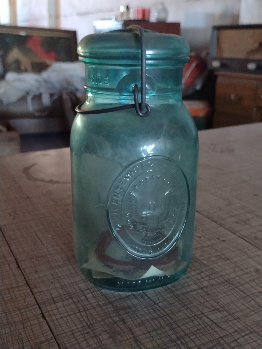 Vintage Ball Blue Bicentennial Bale Top Jar- With Seal and Paperwork- Quart Size