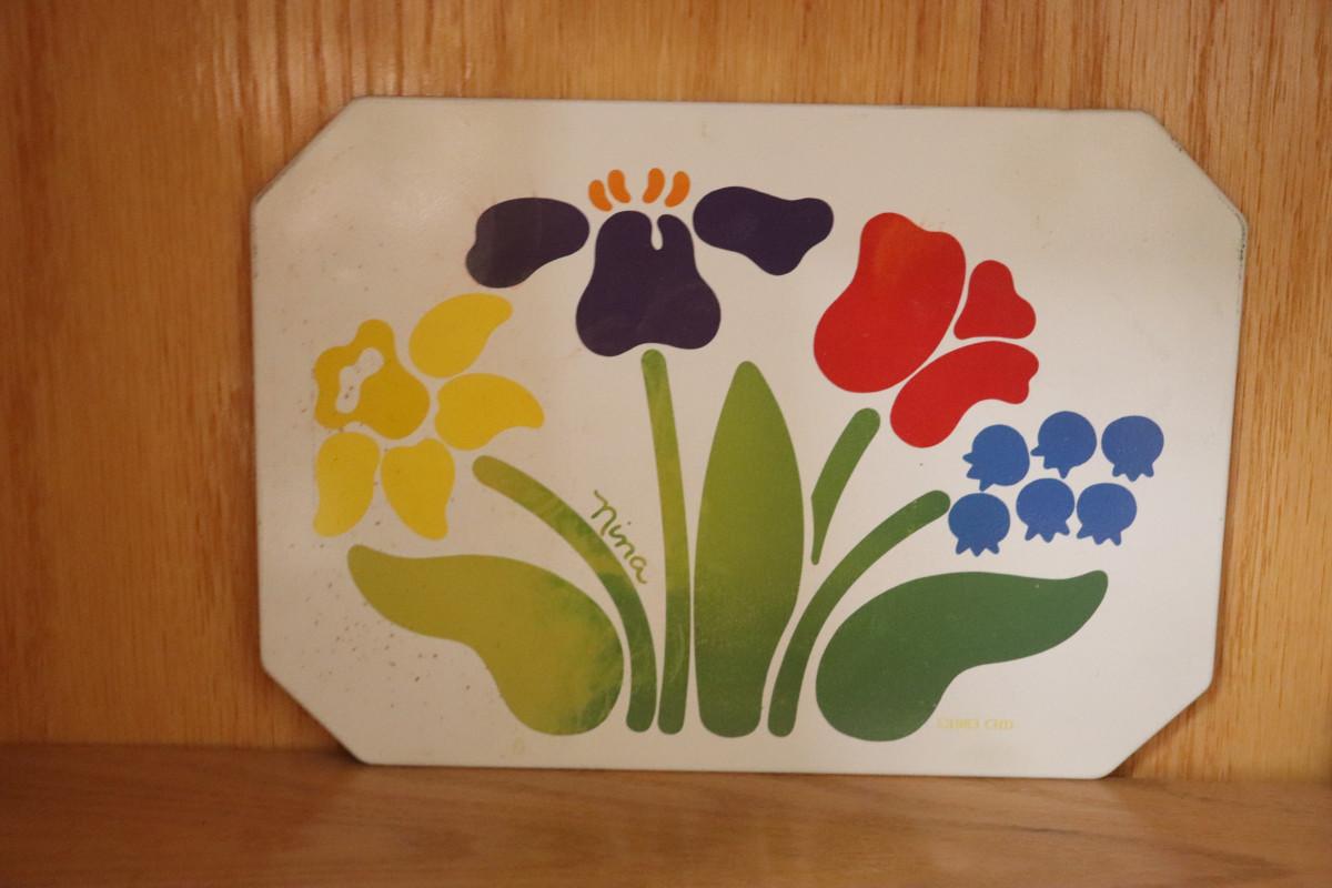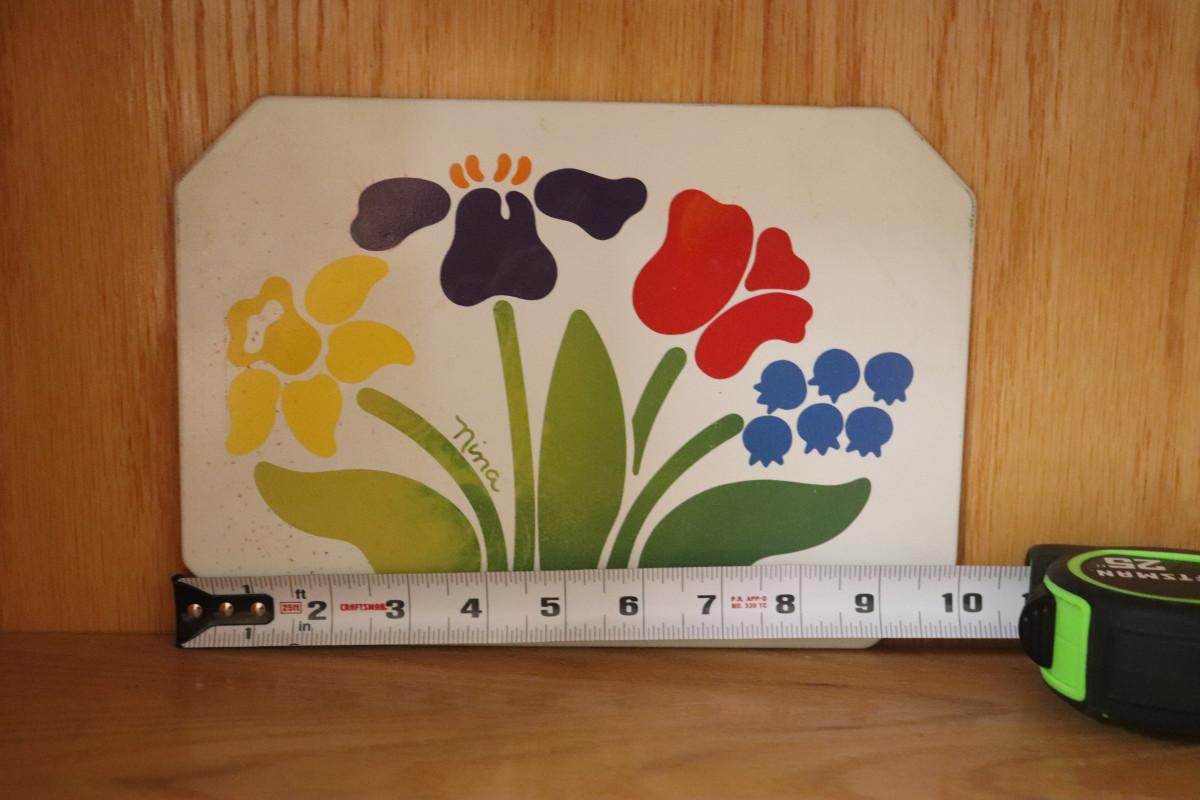 Vintage Ballonoff Nina Tulip Bluebell Daffodil floral Pattern Stove and Counter Mat Series 77, Spice of Life 7 inch square trivet