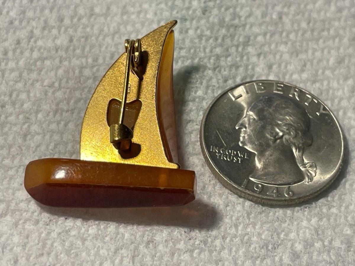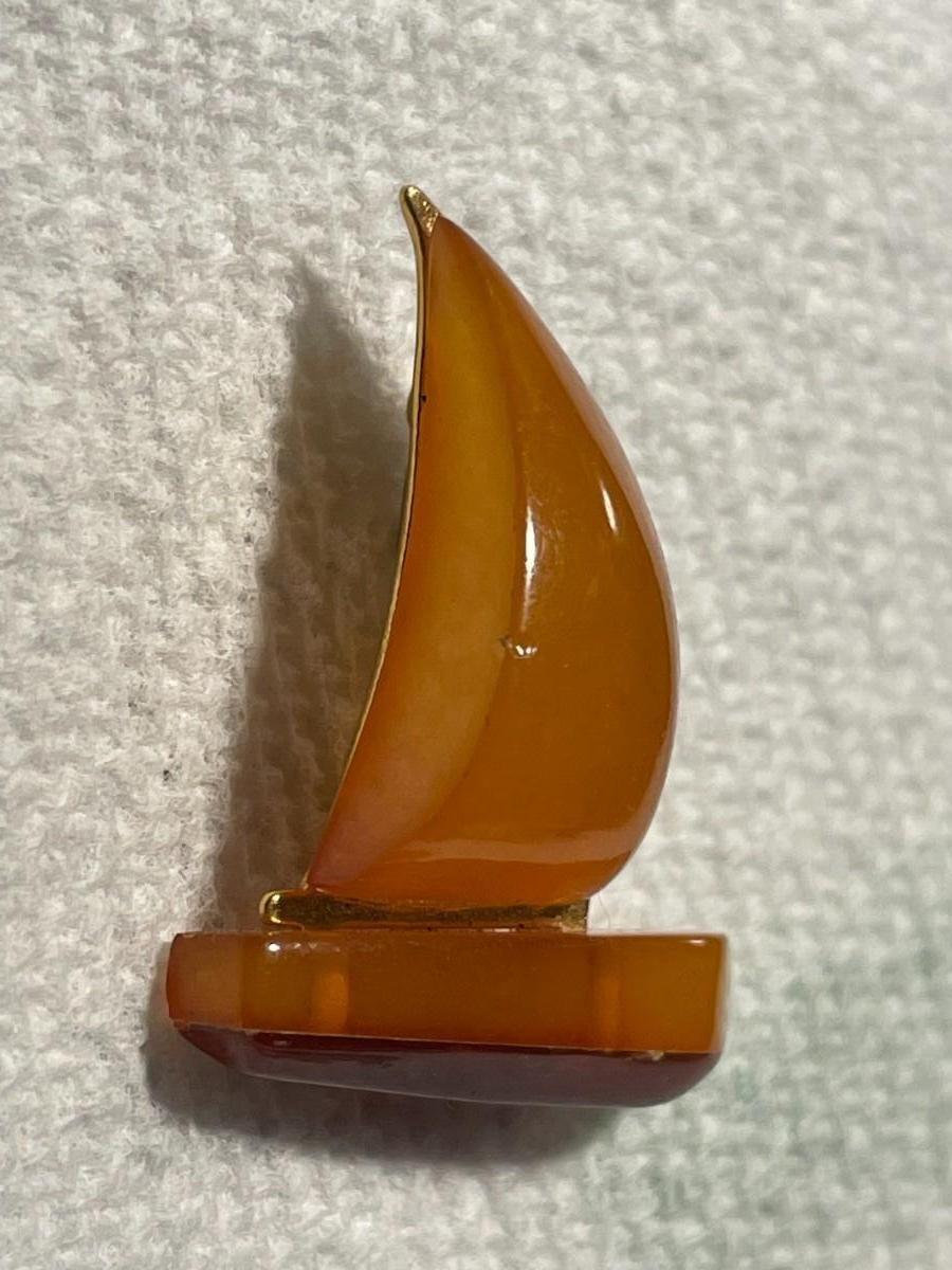 Vintage Baltic Amber Sail Ship Boat Pin in VG Preowned Condition as Pictured. $5 DOMESTIC SHIPPING.