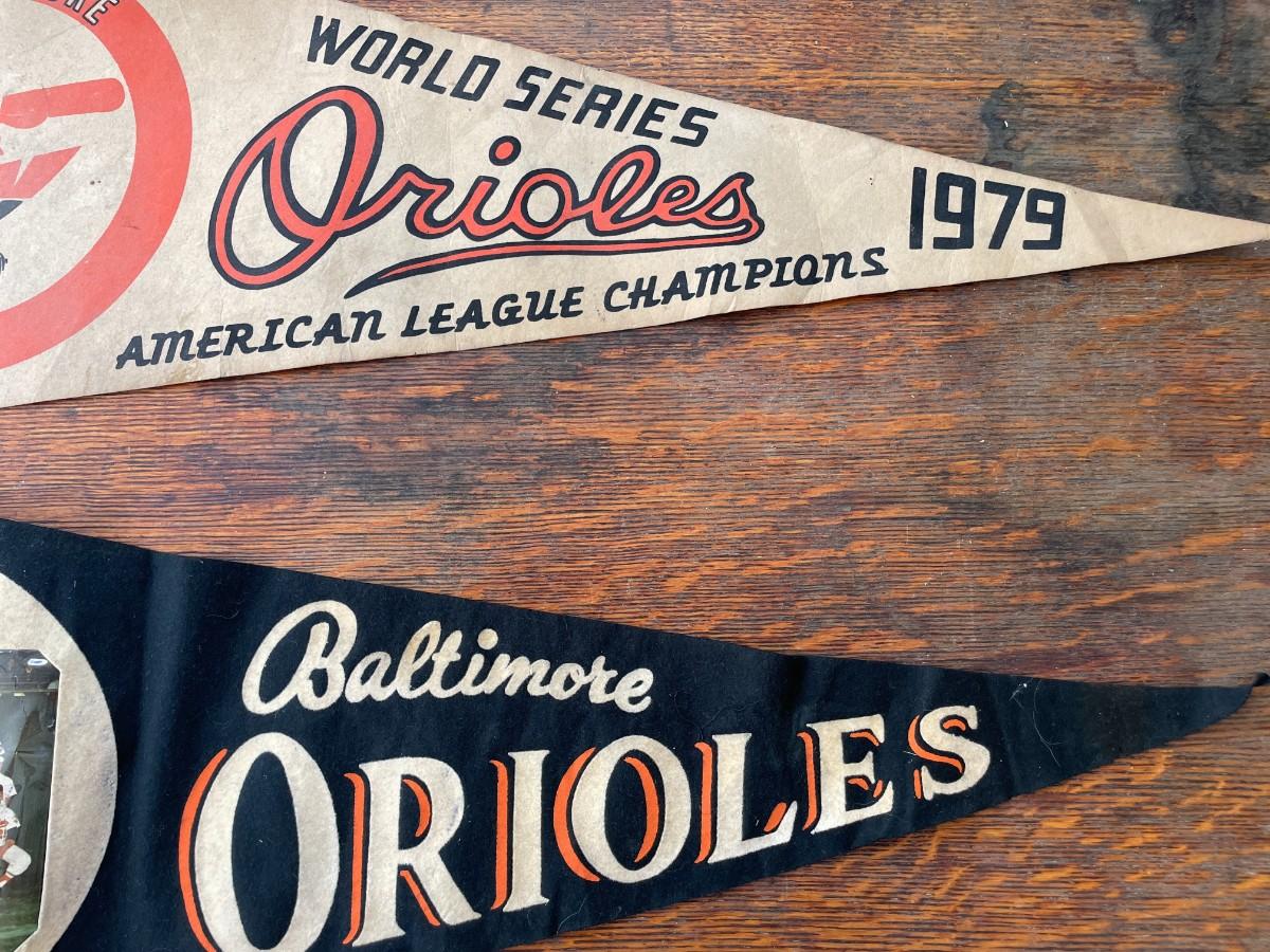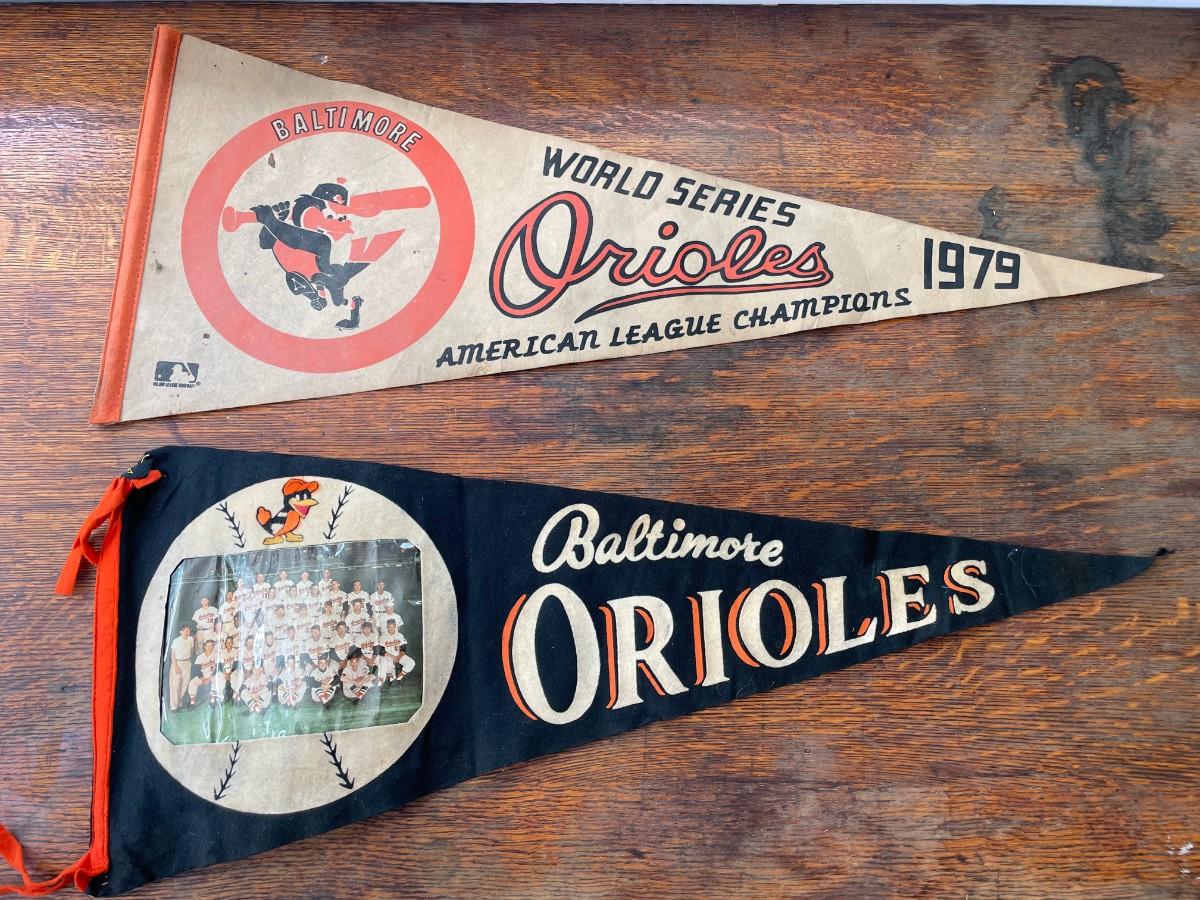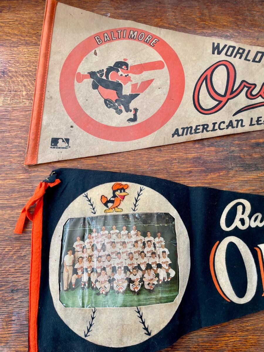 Vintage Baltimore Orioles baseball 1960 team photo & 1979 full-size felt pennants