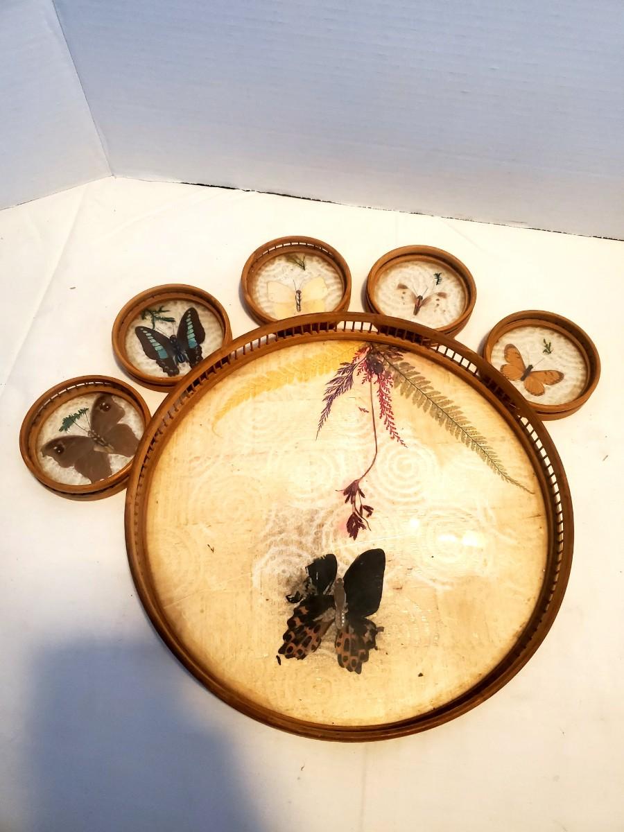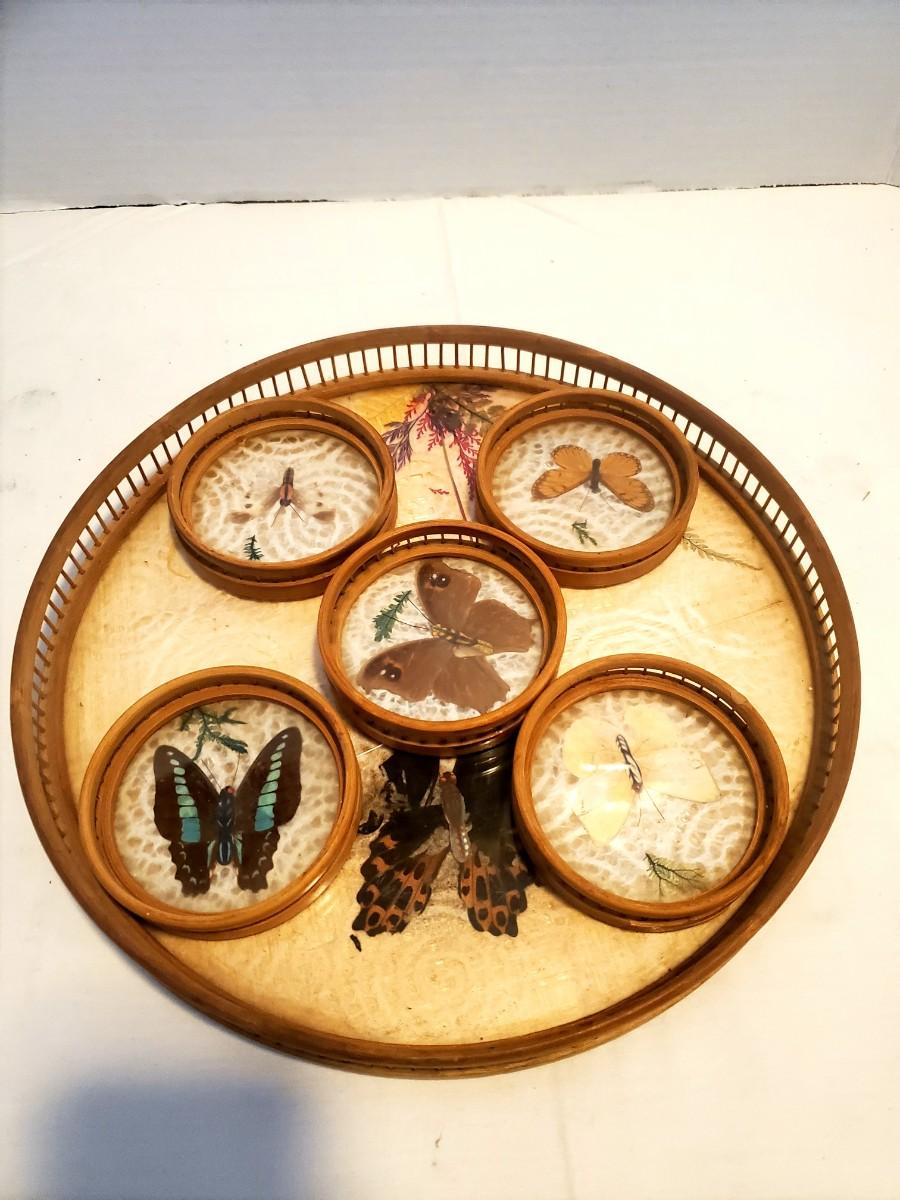 Vintage Bamboo And Butterflies Coasters And Tray Set - See Details