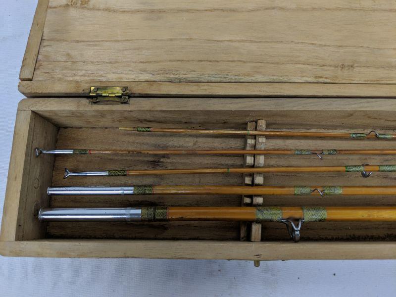 Vintage Bamboo Fishing Pole & Case w/ Accessories