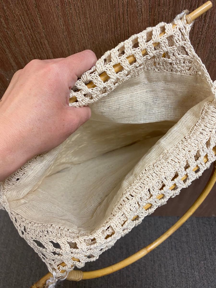 Vintage bamboo handle crochet purse. Looks homemade. In good vintage condition.