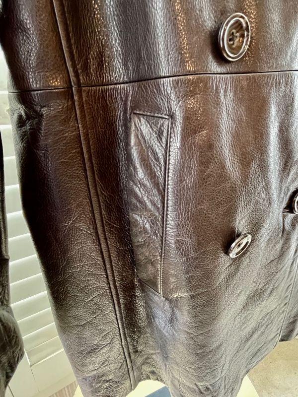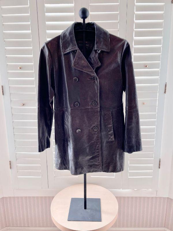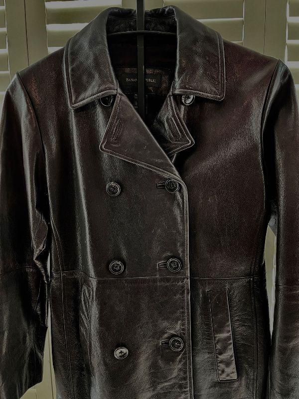 Yummy dark brown leather by Banana Republic - this coat looks brand new. Unsure if it was ever worn.