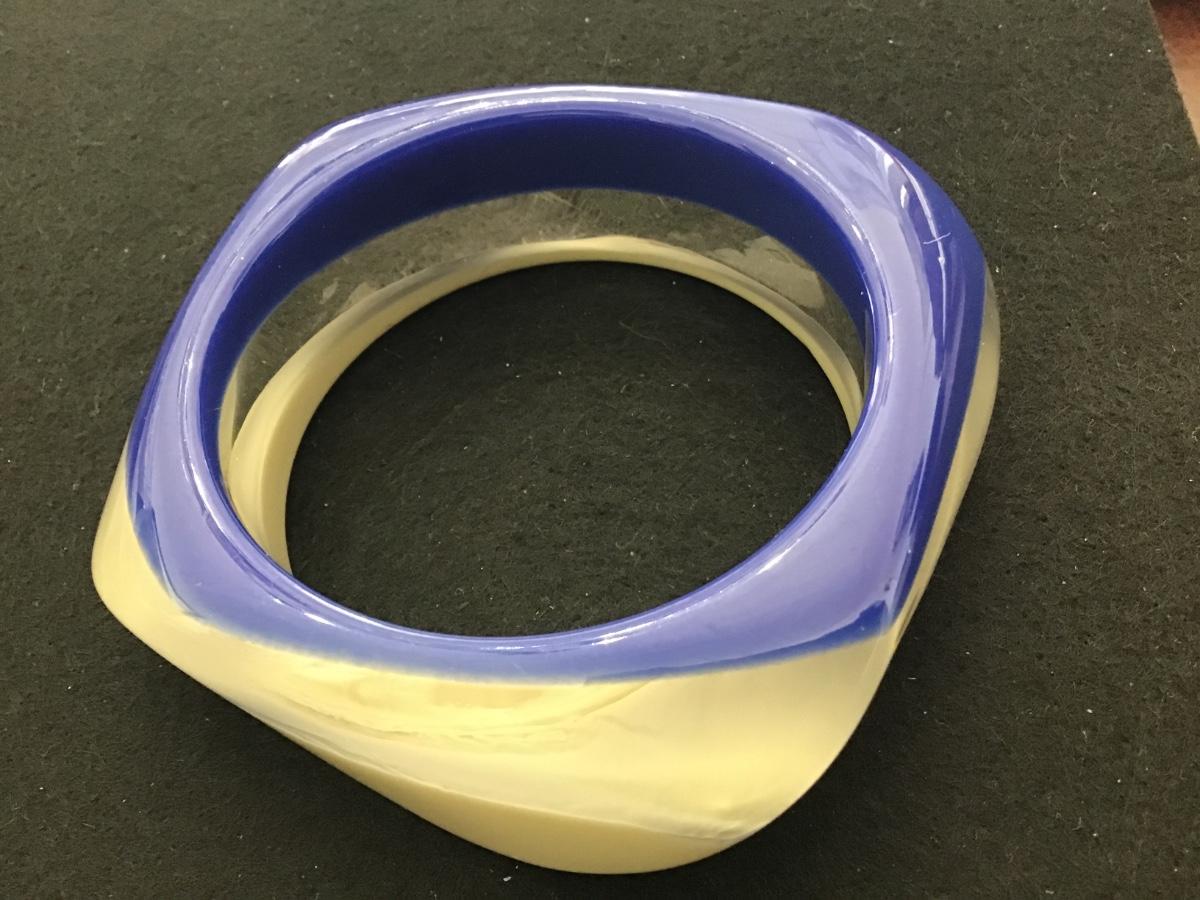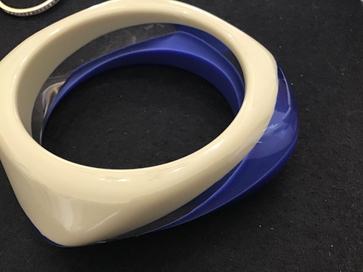 Vintage bangle, bracelet, clear striped retro, Lucite Beige blue, 7.5