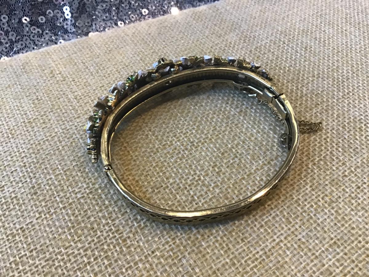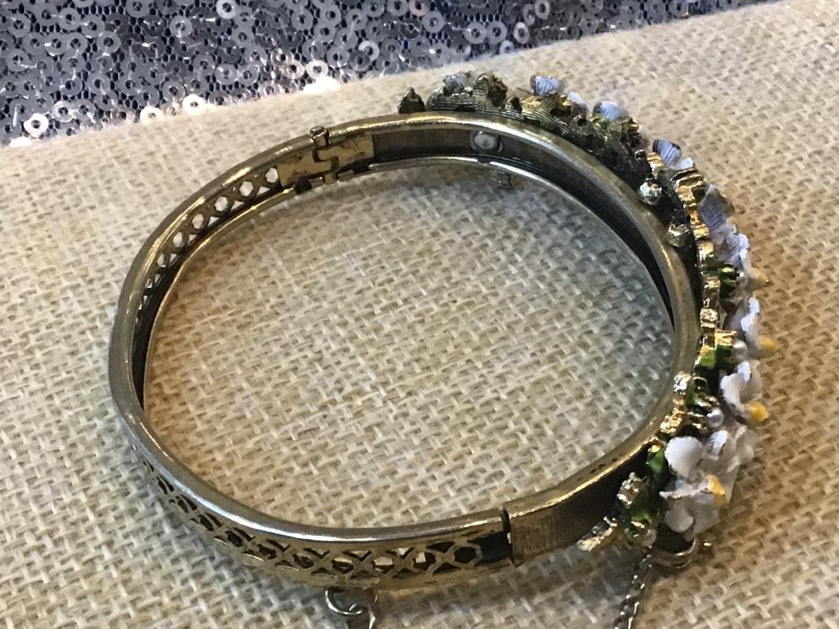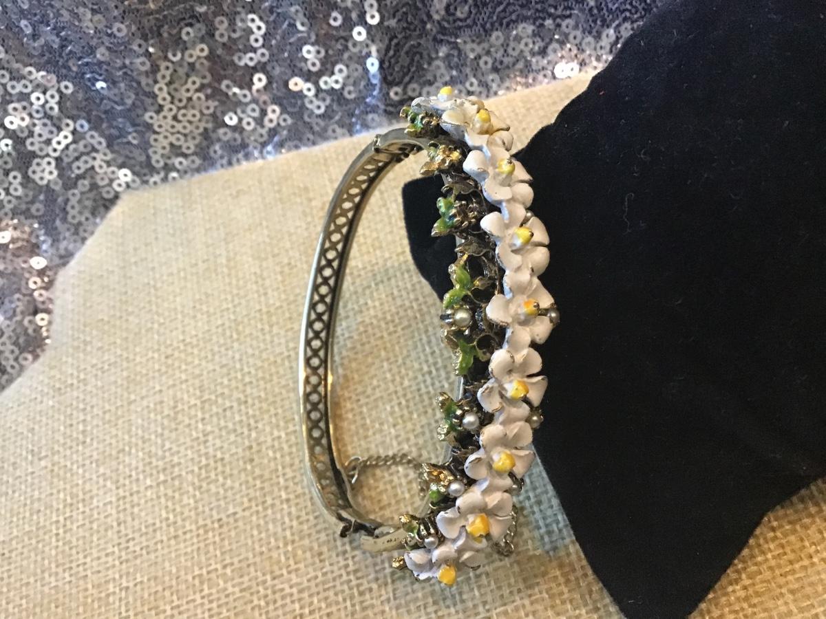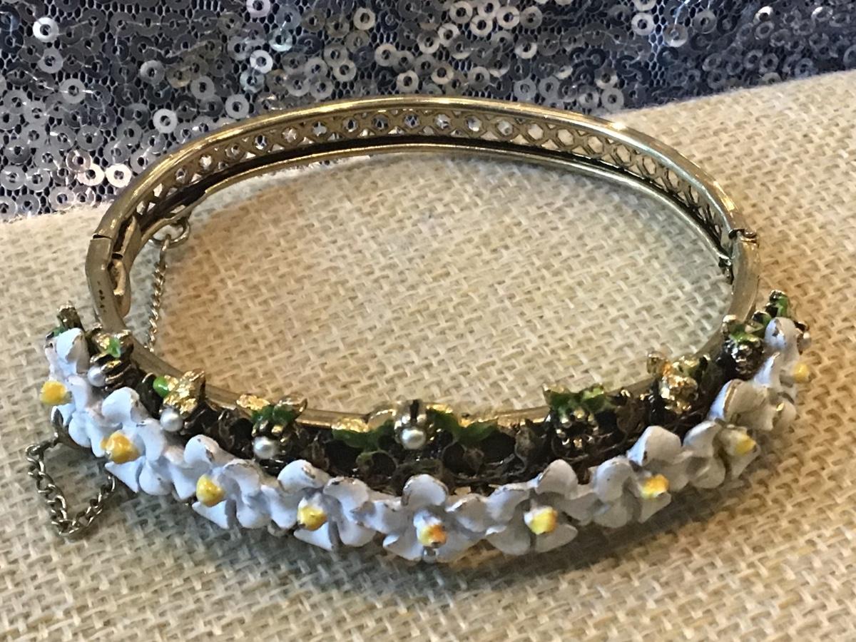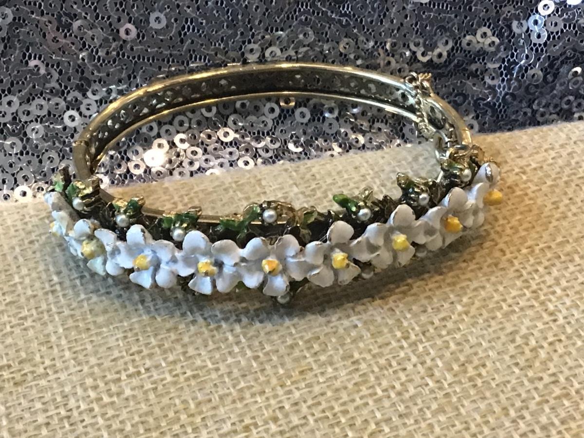 Vintage Bangle Daisies Faux Pearl Safety Chain