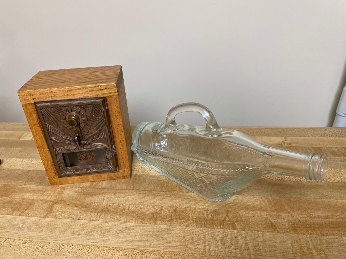 Vintage bank and glass bottle