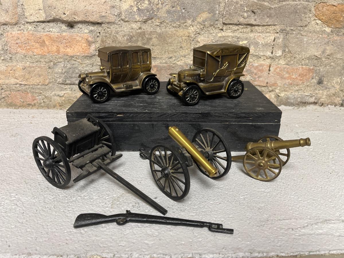 Vintage Banks, cast iron & brass items