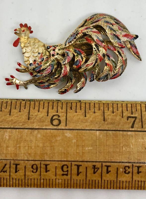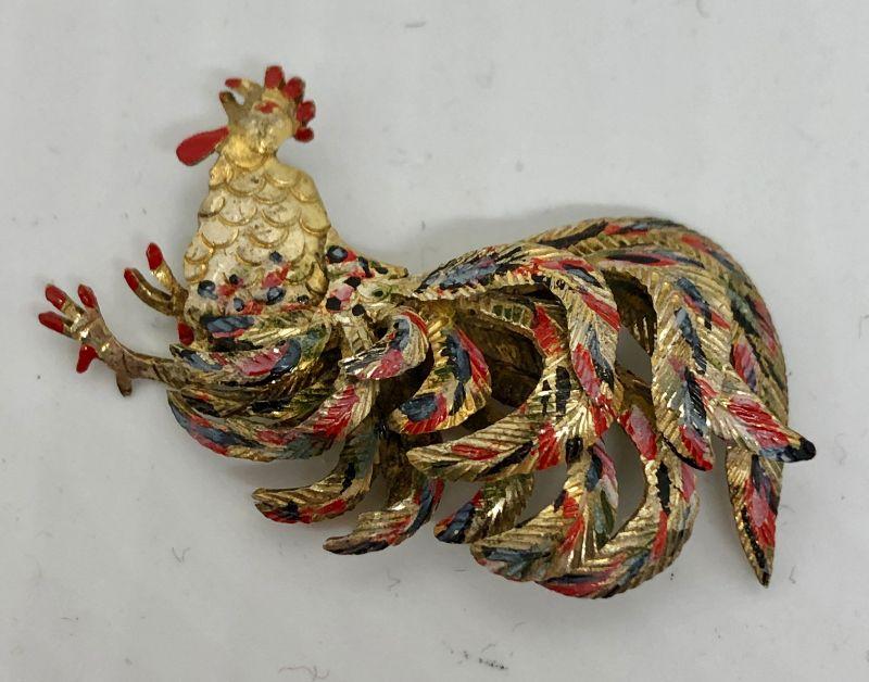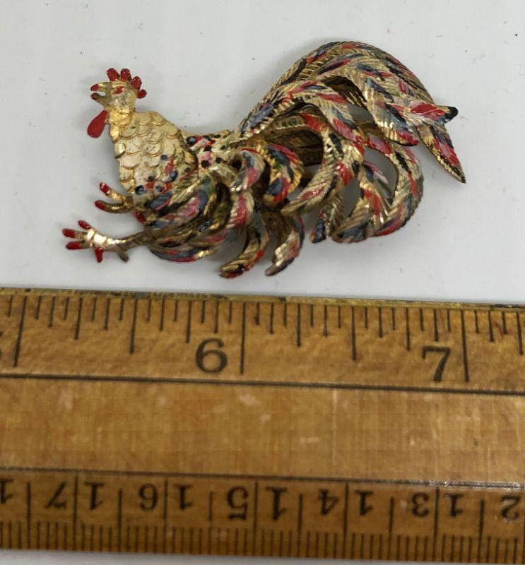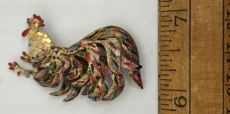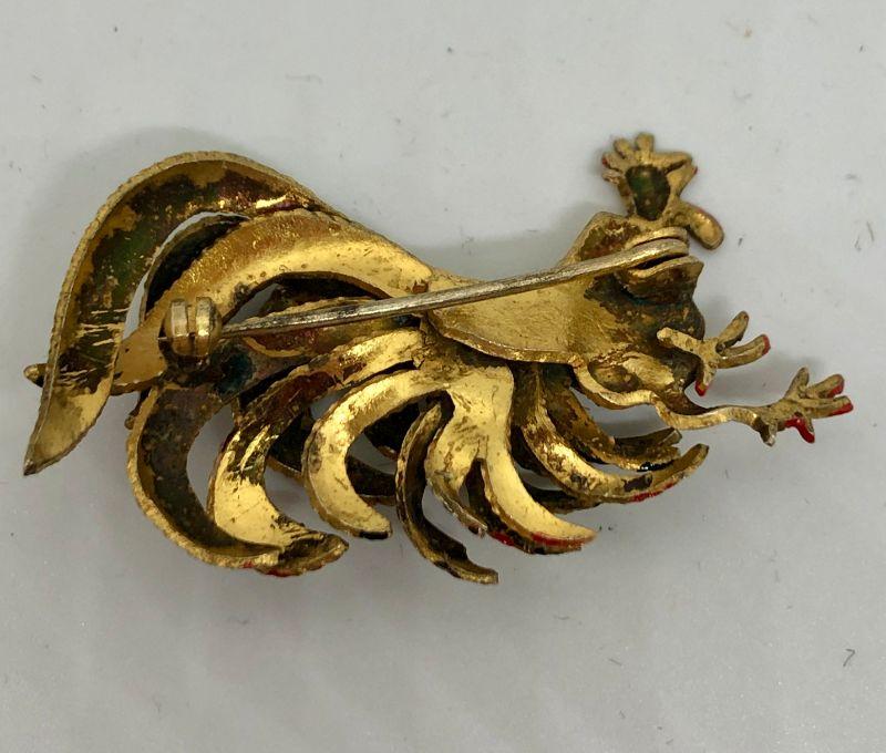 vintage Banty rooster brooch pin with fancy tail red and gold YD#020-1220-05082