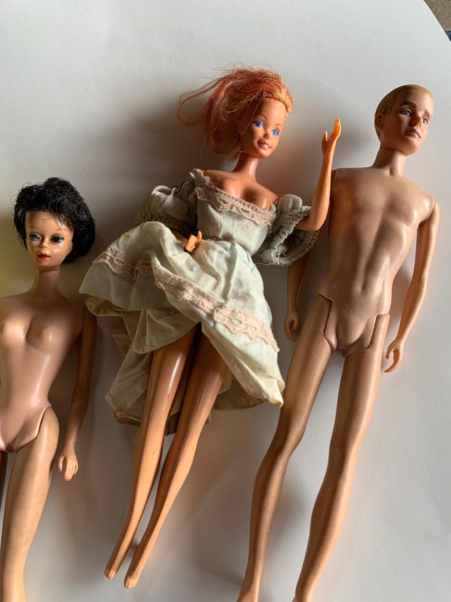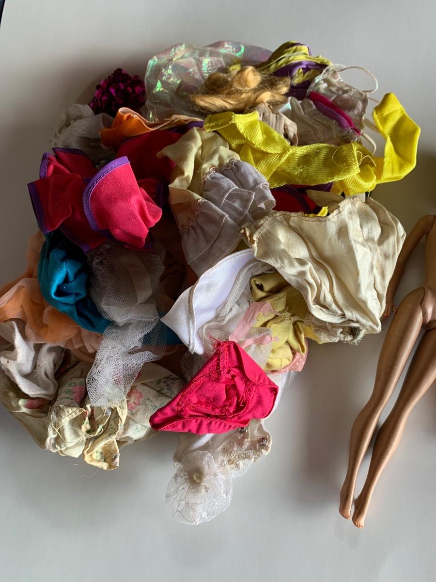 Collection of three with pile of clothes etc