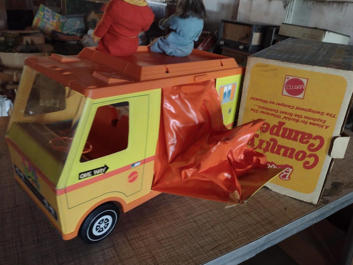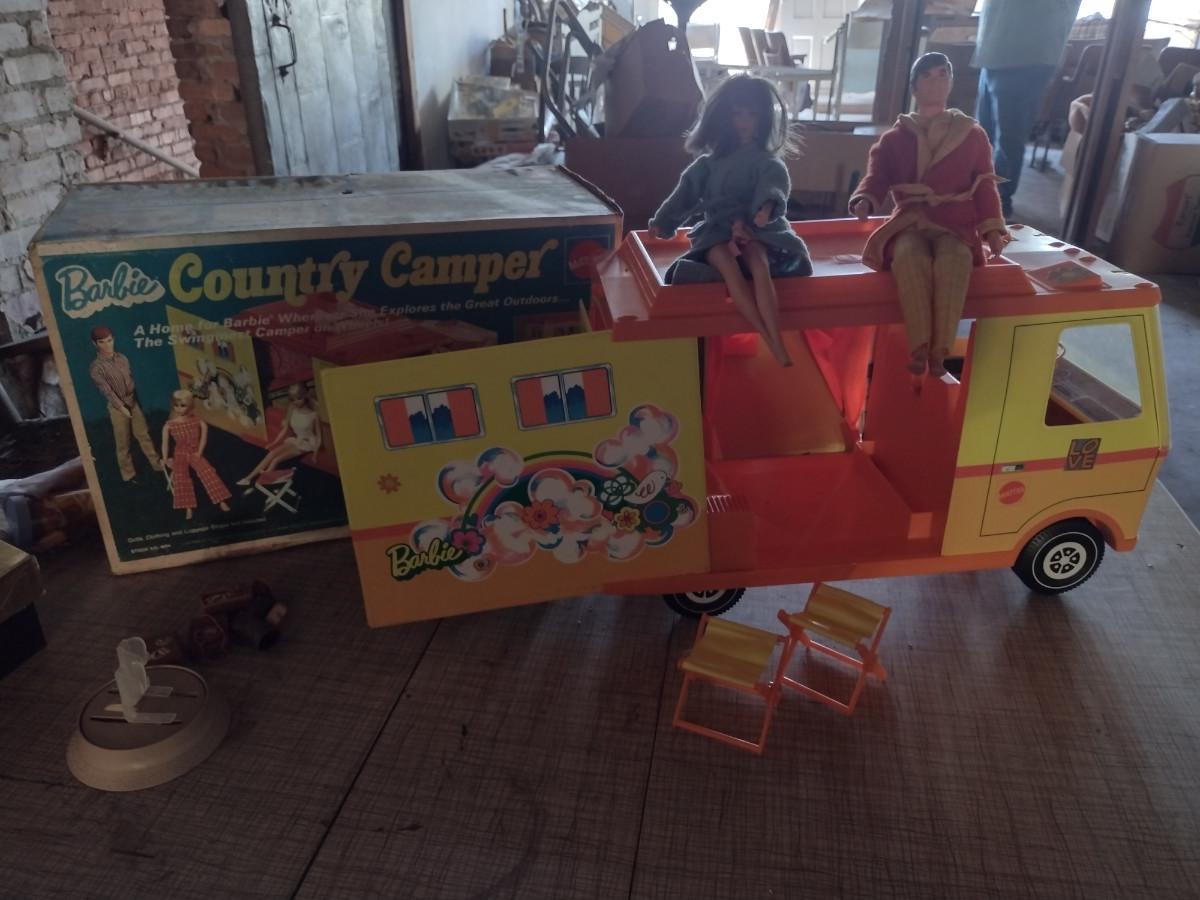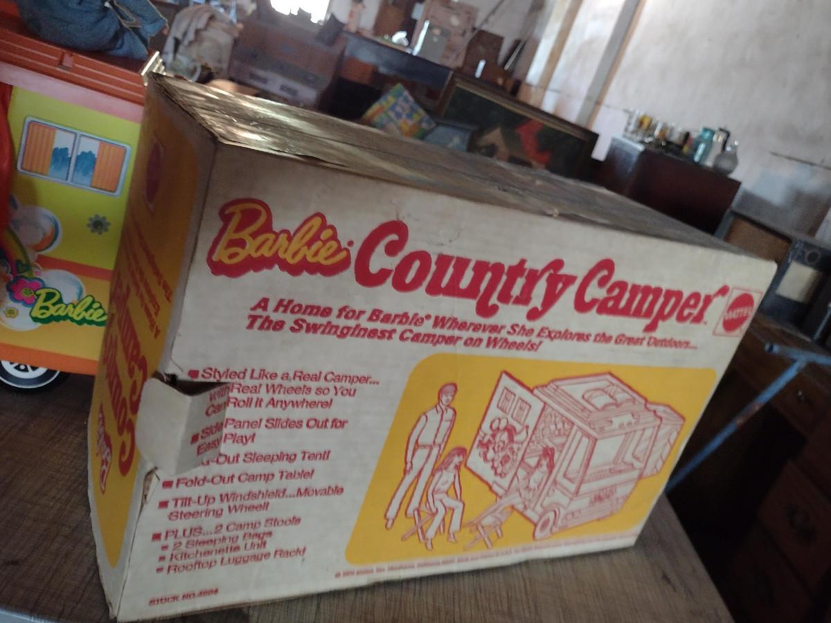 Vintage Barbie Country Camper with Original Box. Item is in used condition, box is faded. Comes with extra accessories and clothing.