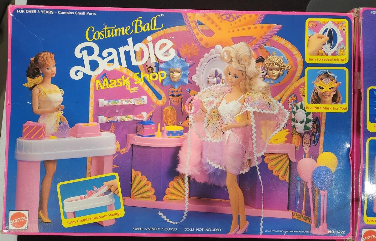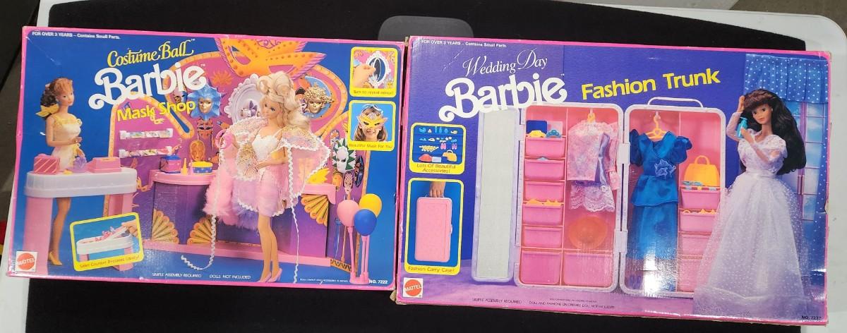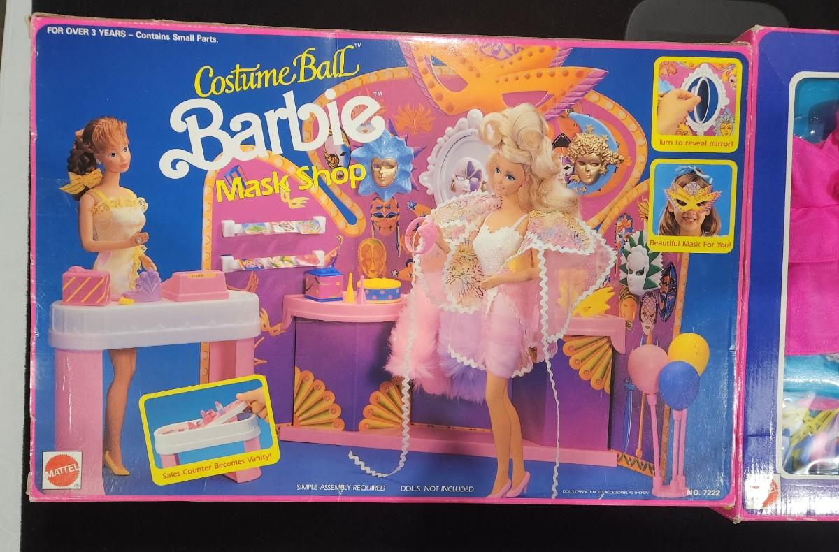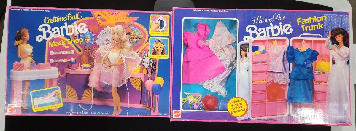Vintage Barbie Doll Wedding Day Fashion Trunk 1991 & Costume Ball Mask Shop Retro Rare