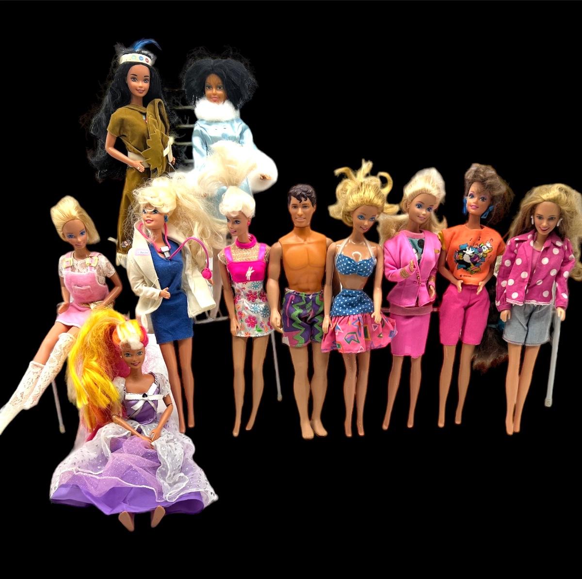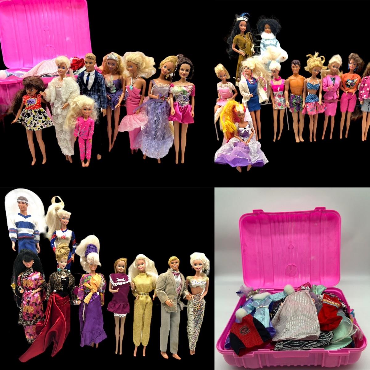 Over 30 Barbie/Ken dolls with a pink trunk full of clothes. Dolls from starting from 1966. These dolls are in used condition and have been played with. Selling lot as a toy lot, as is. See pictures for condition. Dolls have been sprayed with OdoBan and disinfected.