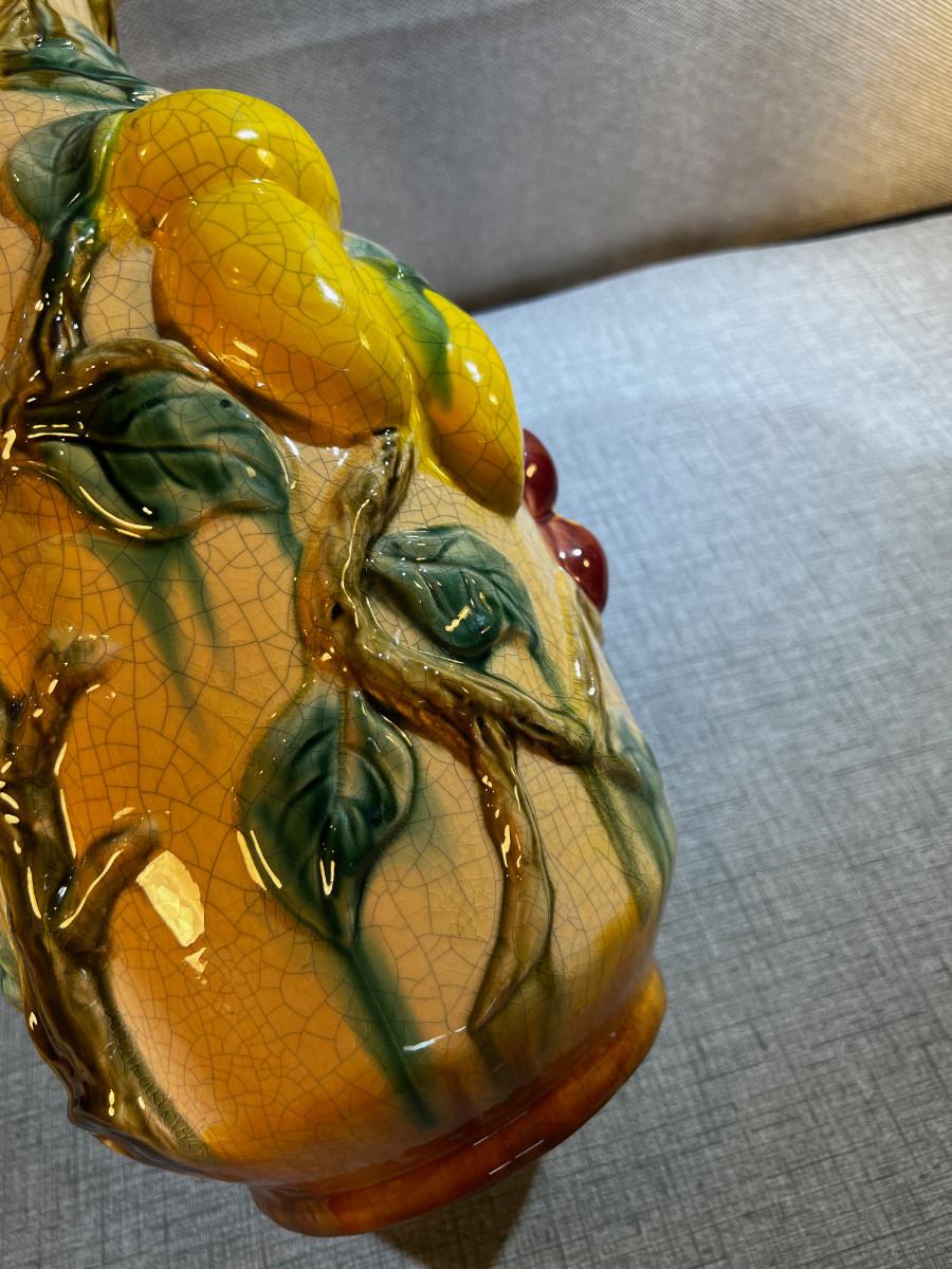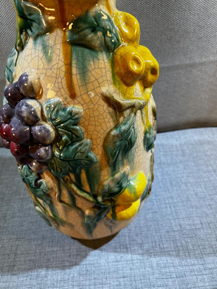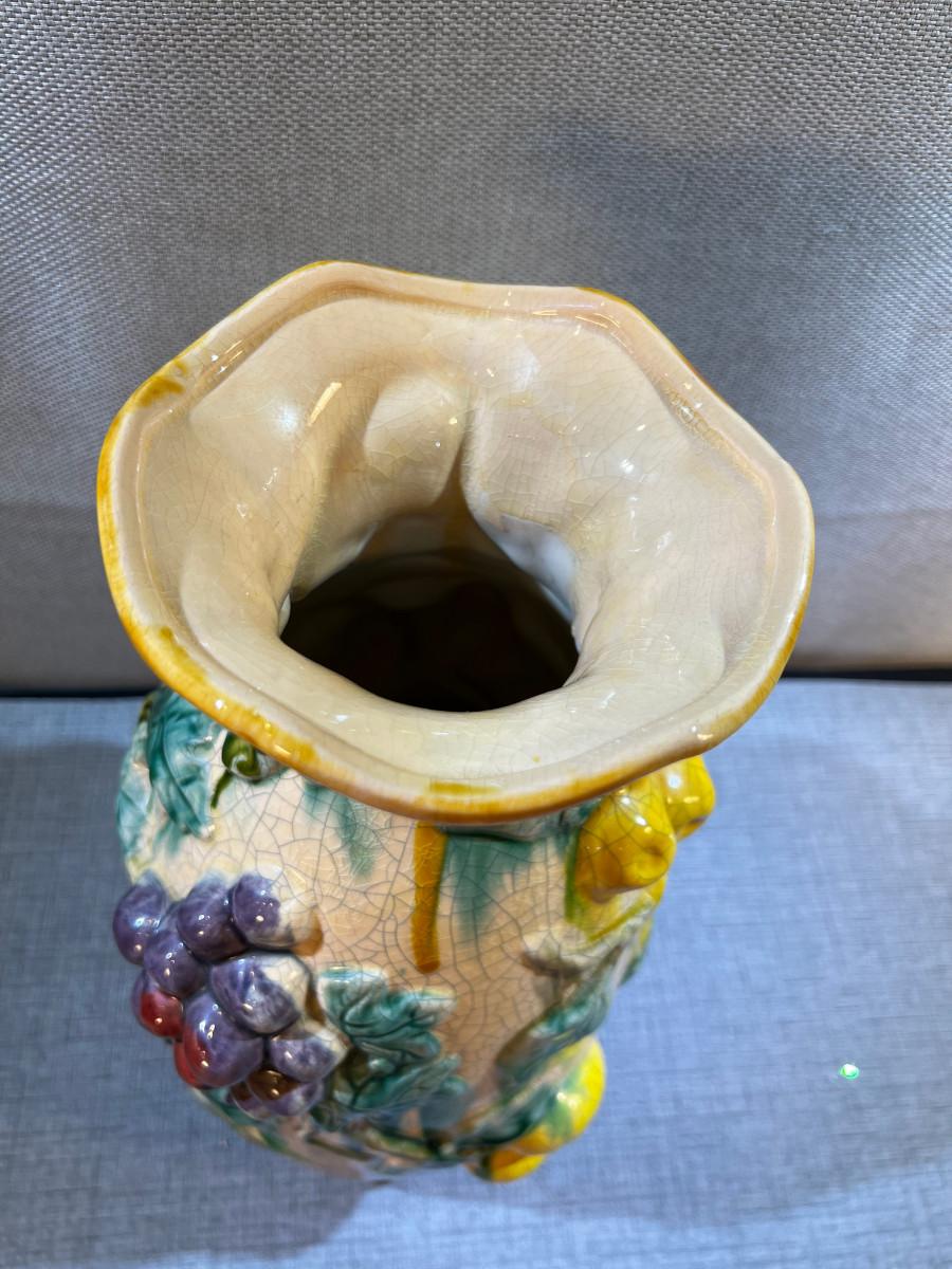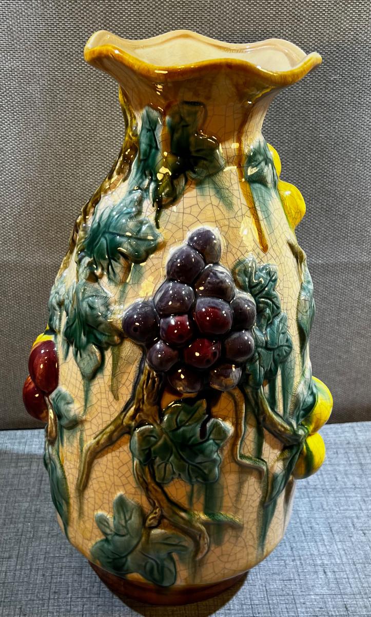 Vintage Barbotine Majolica Fruit Vase