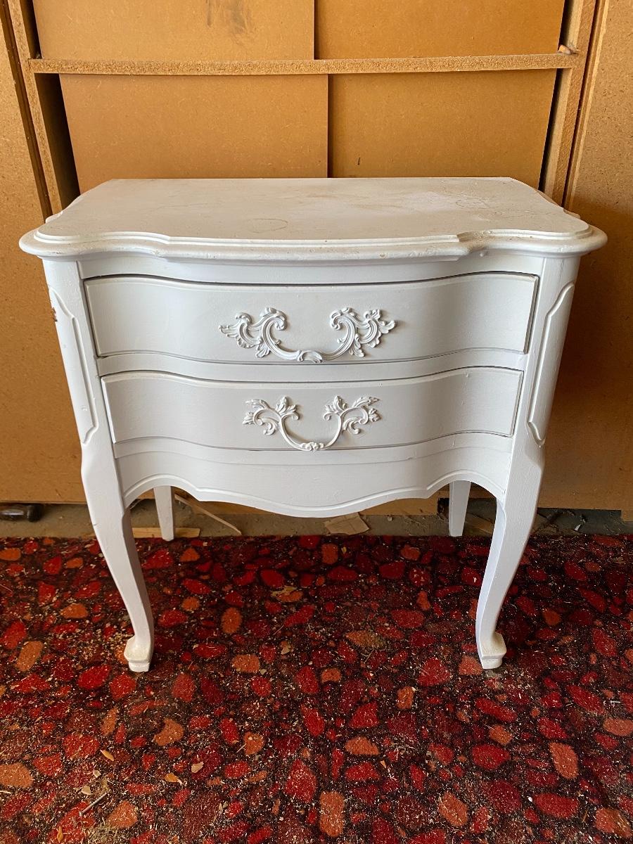 Vintage two drawer nightstand by Barker Brothers. In fair condition needs to be repainted.